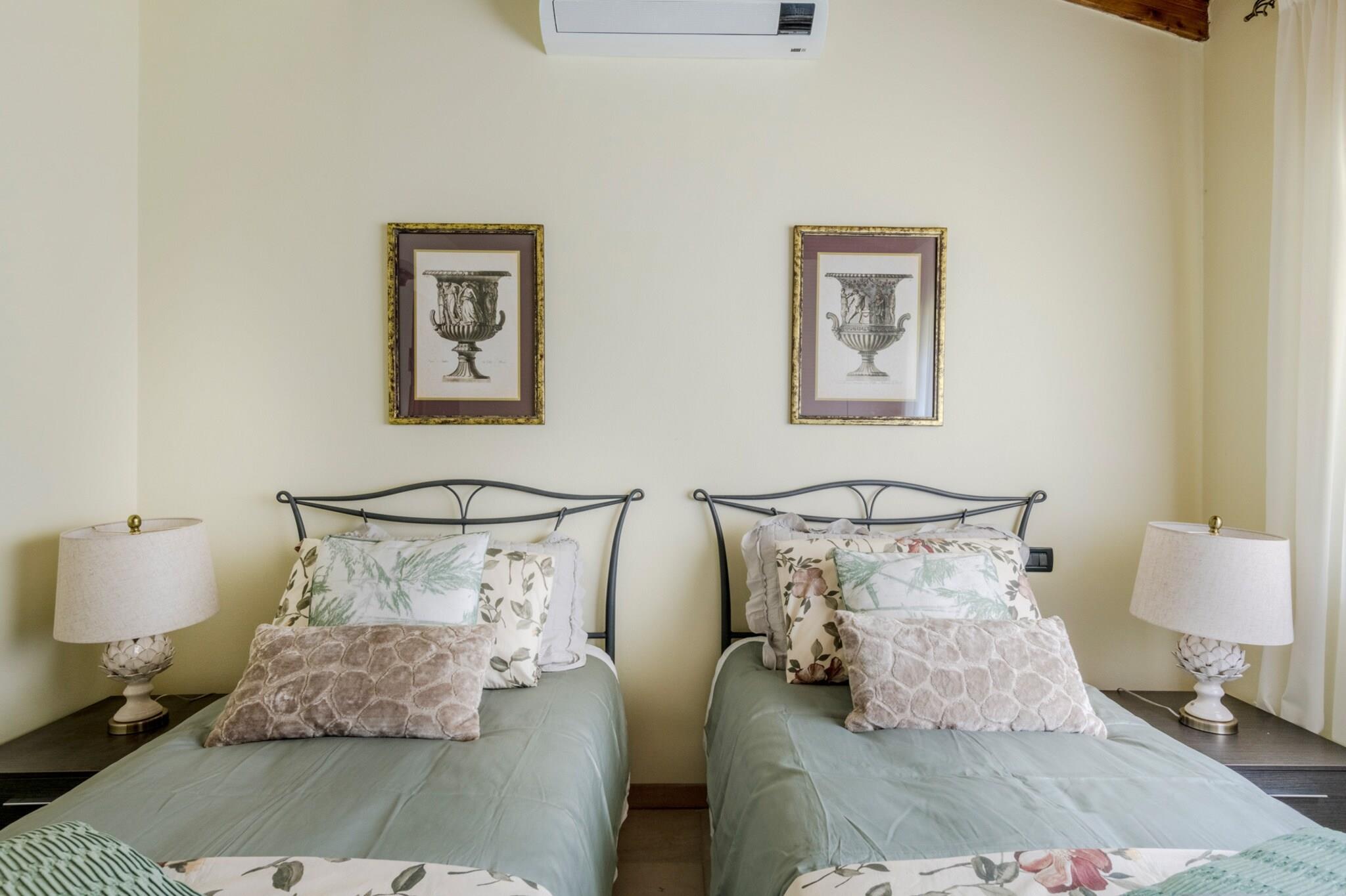 Oplev en komfortabel og velbeliggende lejlighed på første sal i det pulserende San Concordio-distrikt i Lucca. Kun 300 meter fra Porta San Pietro og de historiske bymure tilbyder denne lejlighed en uovertruffen beliggenhed til at udforske byens charmerende gader, butikker og spisesteder. Første sal i et fritliggende hus inkluderer en privat terrasse og udendørs parkering, mens ejeren bor i stueetagen, hvilket sikrer bekvemmelighed og assistance, hvis det er nødvendigt. Lejligheden er på 135 m² og har en rummelig opholdsstue, et fuldt udstyret køkken, to soveværelser og to moderne badeværelser med brusere. Det største soveværelse har en dobbeltseng, mens det andet soveværelse har to enkeltsenge, hvilket gør den ideel til familier eller vennegrupper. Faciliteterne inkluderer aircondition, tv, vaskemaskine, strygejern, hårtørrer og alle nødvendige køkkenapparater, hvilket giver mulighed for et komfortabelt og uafhængigt ophold. Gå udenfor for at nyde terrassen og suge den livlige atmosfære i nabolaget til dig. Med caféer, supermarkeder, restauranter og lokale butikker kun en kort gåtur væk, er alt hvad du behøver inden for rækkevidde. Lejligheden ligger også bekvemt tæt på togstationen og motorvejskrydset, hvilket giver nem adgang til nærliggende attraktioner. Denne lejlighed er perfekt for rejsende, der søger en central, men afslappet base i Lucca, og kombinerer moderne komfort med en førsteklasses beliggenhed for en uforglemmelig byoplevelse. Bemærk: Turistskat er inkluderet i prisen.