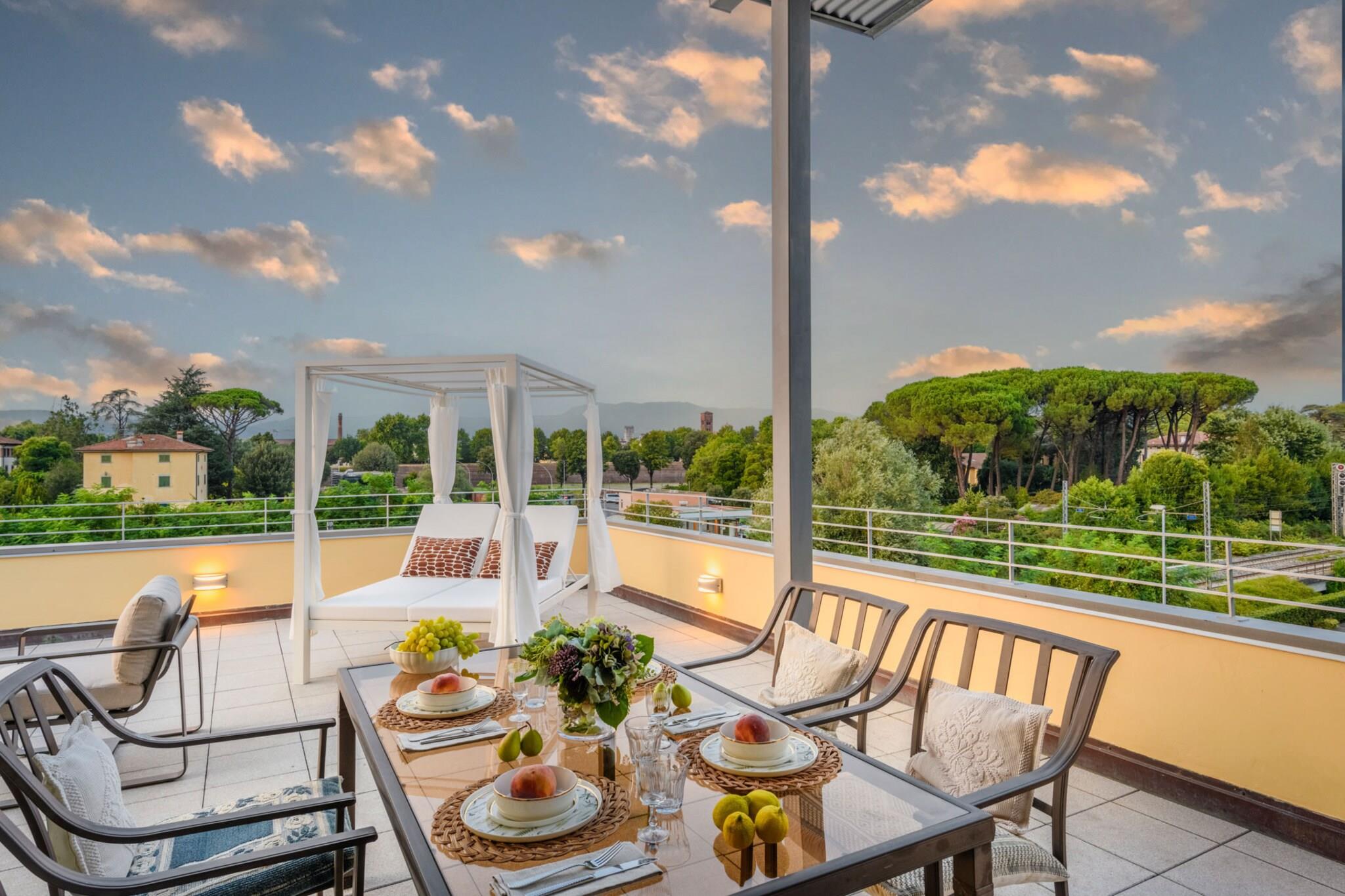 Penthouse i Lucca med terrasse og udsigt