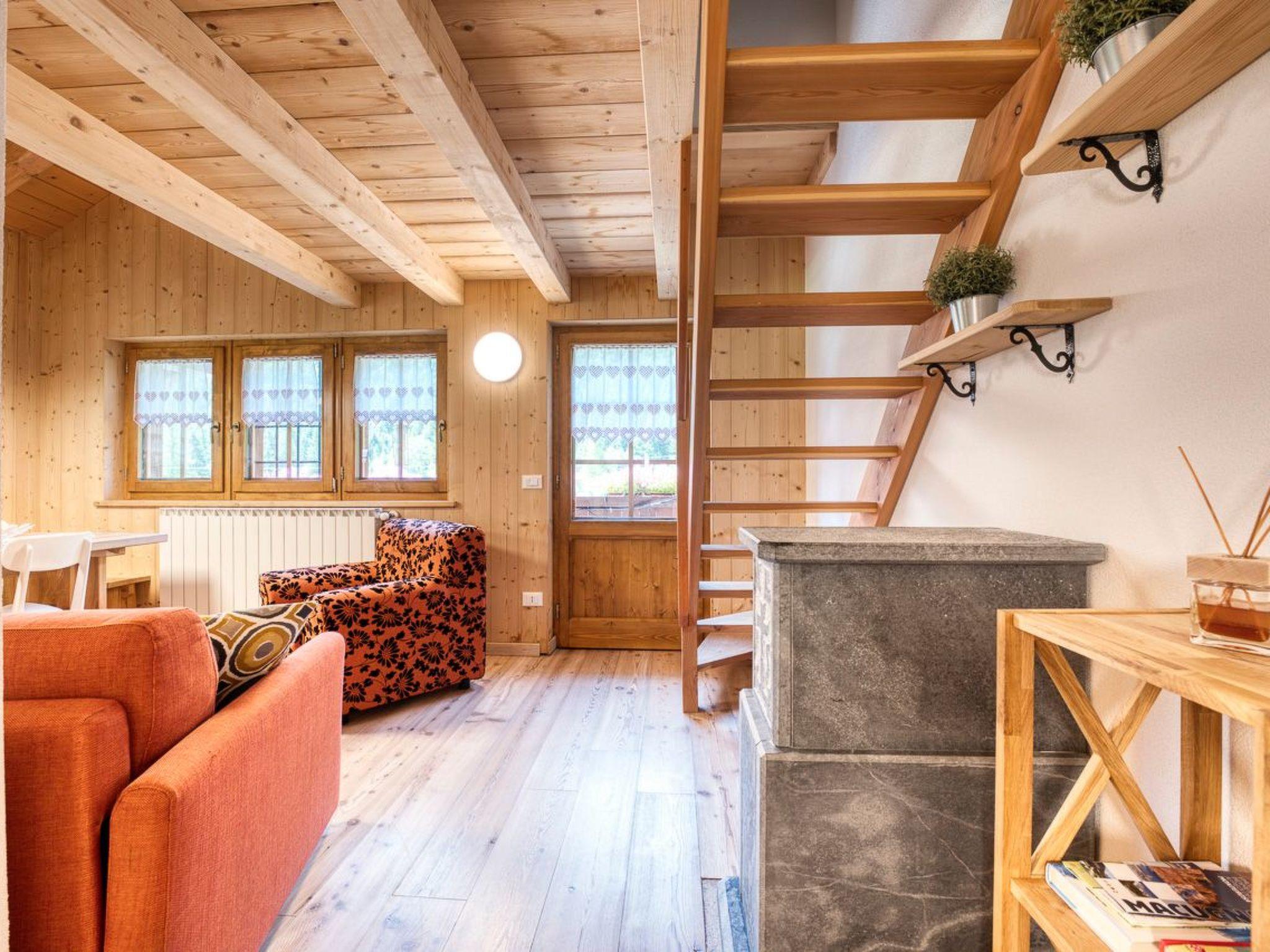 - Living room with solid wood table, modern equipped kitchen and double sofa bed;