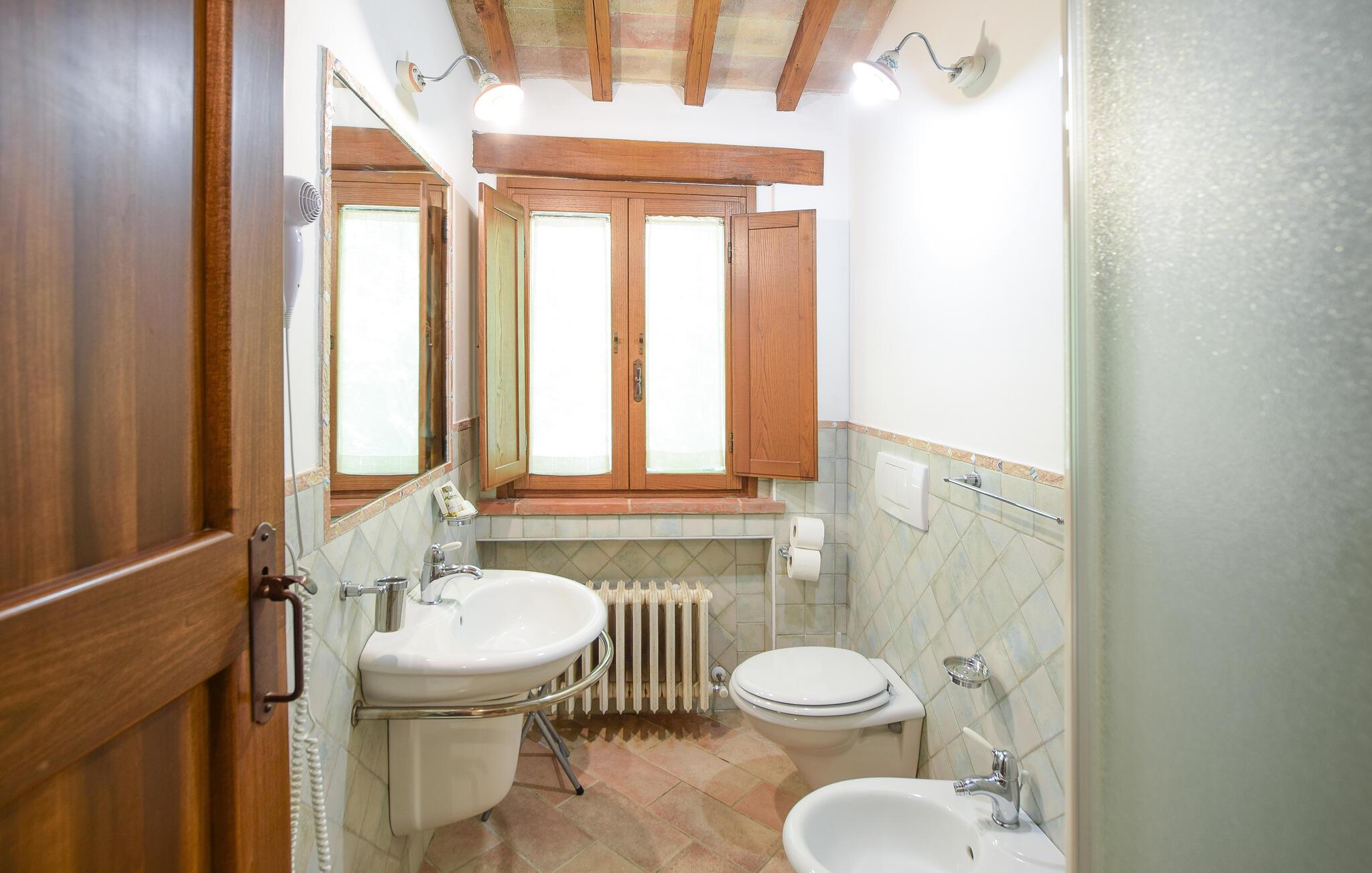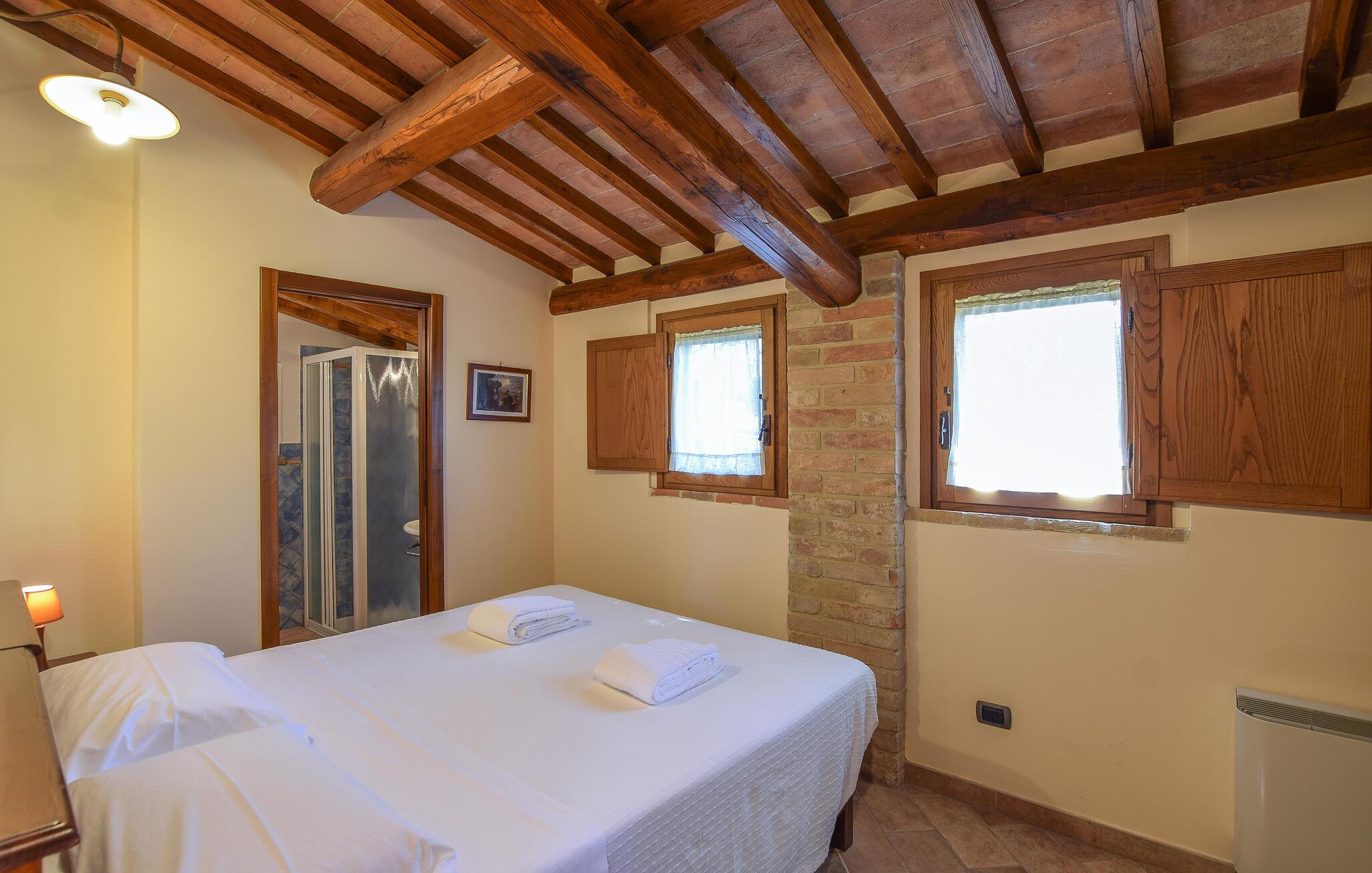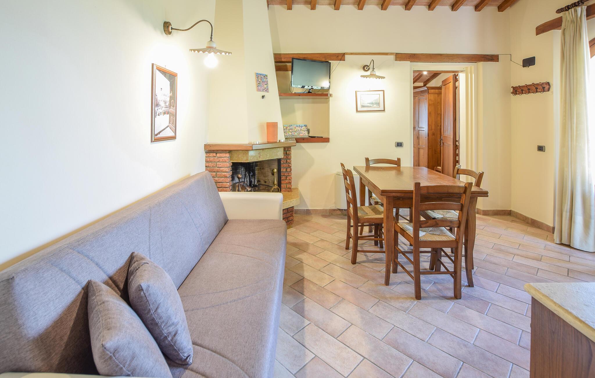 Tag familien under armen og rejs til Magione, hvor I tæt på Trasimenosøen finder en skøn base i dette indbydende hus, der tidligere var stuehuset på en bondegård. Huset ligger i smukke, grønne omgivelser og er indrettet med alt, I behøver for et helt og aldeles bekymringsfrit ophold. Køkkenet er rummeligt og veludstyret, så I kan roligt gøre madlavningen til et fornøjeligt fællesprojekt, inden I dækker op til den store middag ved spisebordet. Efter aftensmaden kan I rykke over i sofaen med lækre snacks og en god film på tv'et, mens I lægger planer for de kommende dage.