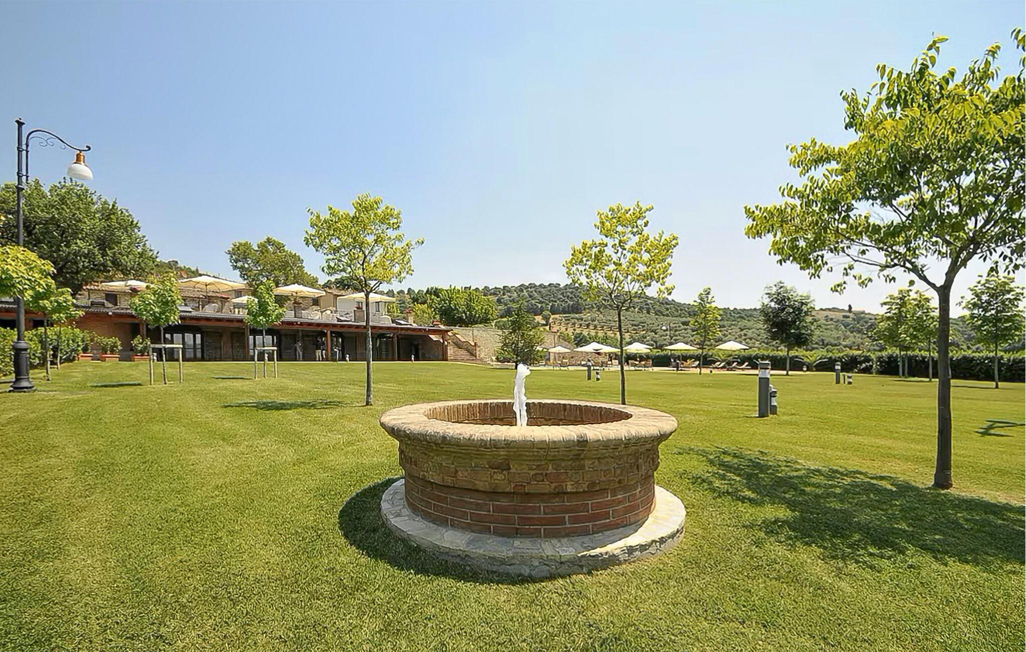 Prikken over i'et er udearealet, der byder på en stor, parklignende have med flere bænke, hvor I kan nyde morgenkaffen og udsigten over det smukke landskab. Når varmen har bagt jer godt igennem, kan I køle jer af med hele familien i den rummelige pool, inden I tager på udflugt.
