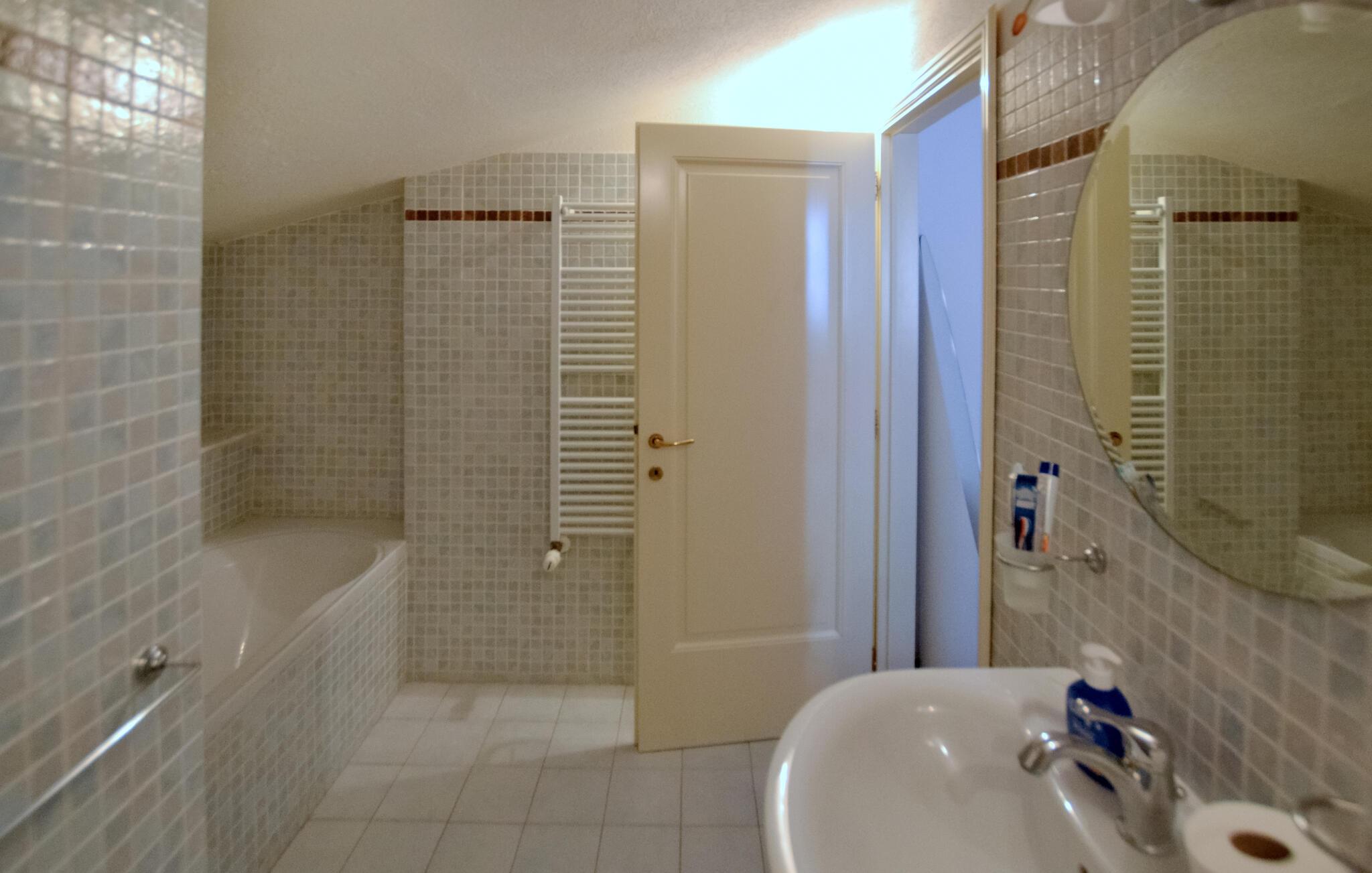 Denne lejlighed har sit rene linjer, hvor alt har sin plads, fra det moderne køkken til den komfortable opholdsstue med sofa og gyngestol. Slap af og kom i ferietilstand. Lav mad sammen i det åbne køkken, nyd dagens måltider med et glas italiensk vin, og afslut aftenen med at slappe af på sofaen.