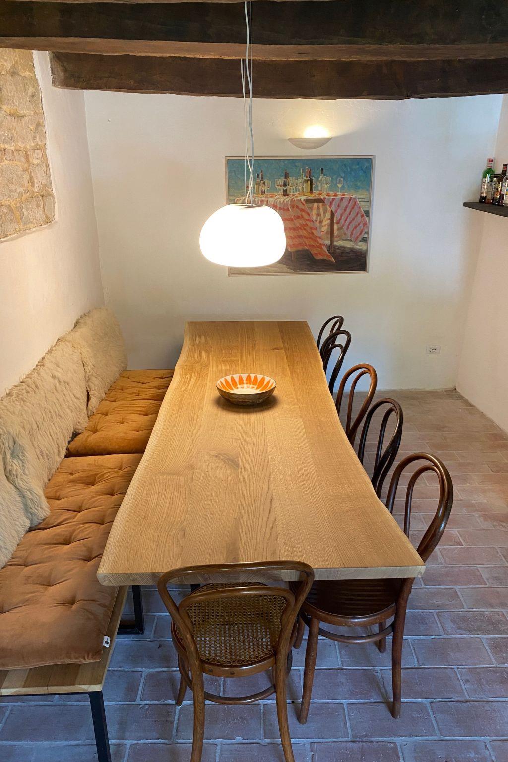 A caretaker lives between Penna and our hamlet - you can contact her in an emergency. In the kitchen you will find a dishwasher, two large fridges and a large cooker. Adjacent is a spacious dining room with a bench and chairs. An intermediate room with a desk leads into the living room with an open fireplace and two sofas. There are two large wooden tables for 10-12 people on the covered terrace, as well as a Weber gas barbecue. There are several loungers around the pool and a lounge area where you can enjoy the sunset. Stable internet is provided by Starlink. We have invested in beautiful details such as antique vases to create a cosy, homely and comfortable atmosphere - in the hope that you will appreciate them and treat them with care.