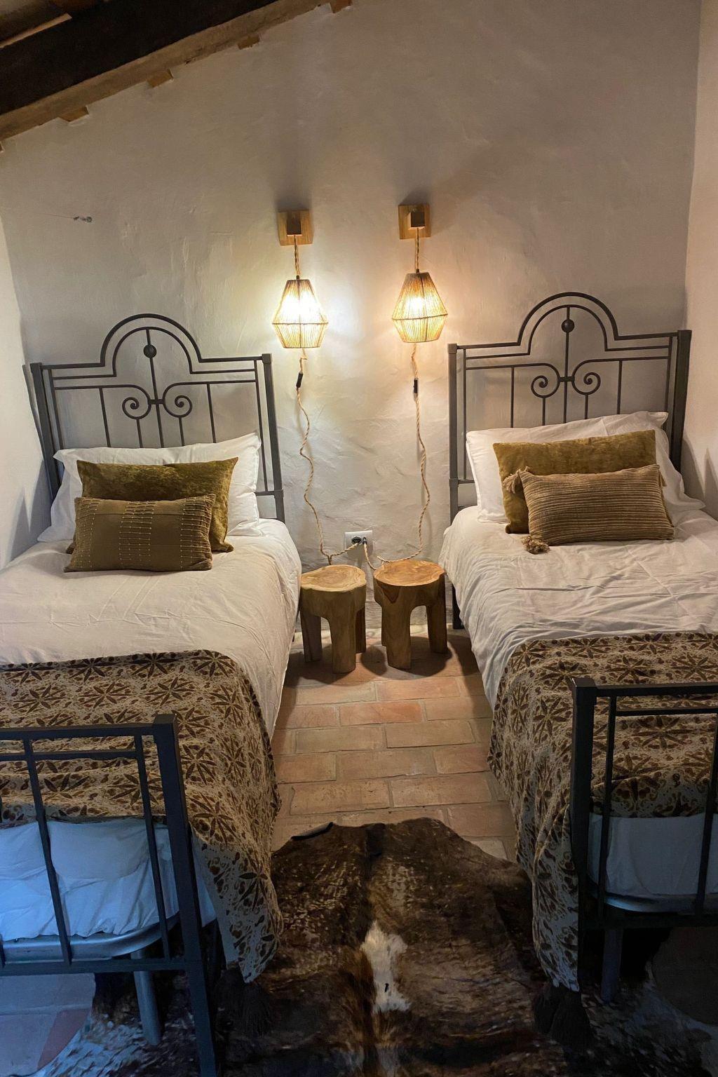 In the house, two staircases lead to the upper floor with high ceilings. There are three bedrooms and two bathrooms on each side of the house - a total of six bedrooms and four bathrooms. All rooms are equipped with double box-spring beds, with the exception of one room, which has two single beds. Thanks to the thick walls, the house remains pleasantly cool. All rooms are equipped with fly screens and blackout blinds - for peaceful, undisturbed nights.