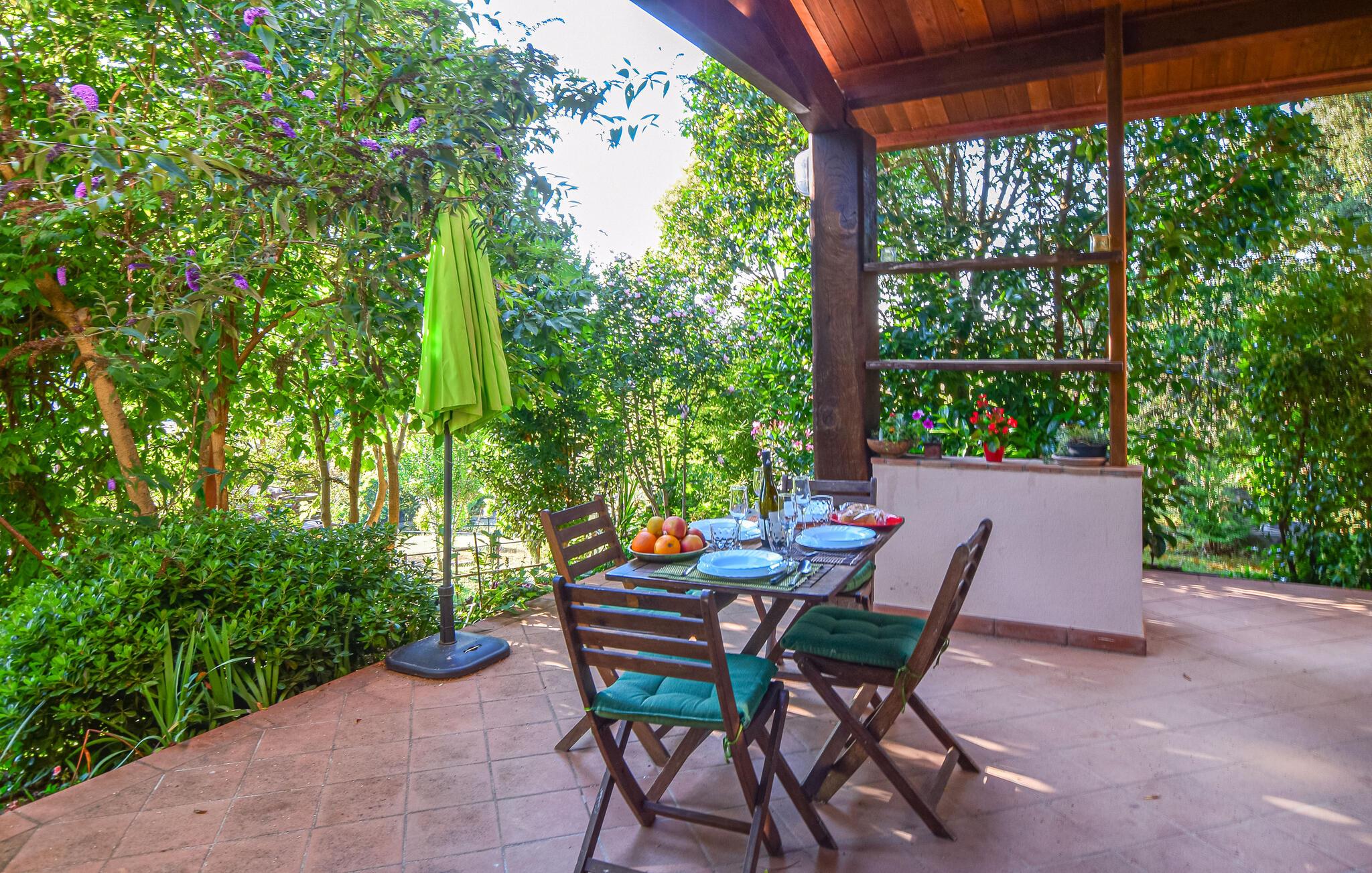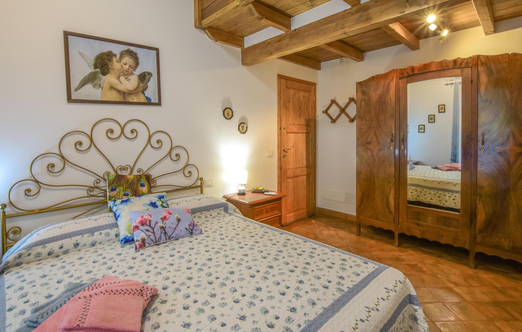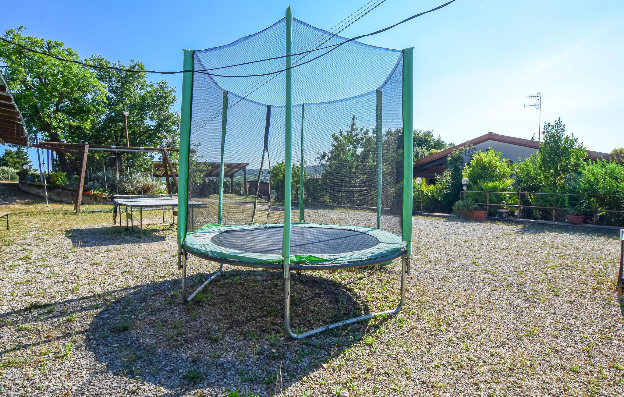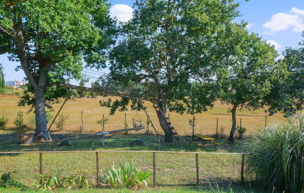 Oplev denne ferielejlighed, der vil fortrylle jer med familiær charme og en varm, indbydende atmosfære. De kærligt indrettede rum inviterer jer til at finde ro og nyde jeres ferie fuldt ud. I det veludstyrede køkken kan I lave mad sammen og derefter nyde måltiderne på jeres terrasse. Den store grund byder på mange muligheder for afslapning: en swimmingpool, en børnepool, en tennisbane og en idyllisk dam med bro, hvor I kan nyde afslappende timer udendørs.