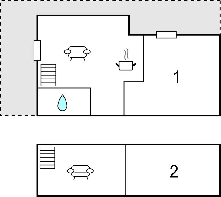 Opholdsstue/køkken 18m2 - 2 Sovepladser. (Sofa, madras eller lignende).