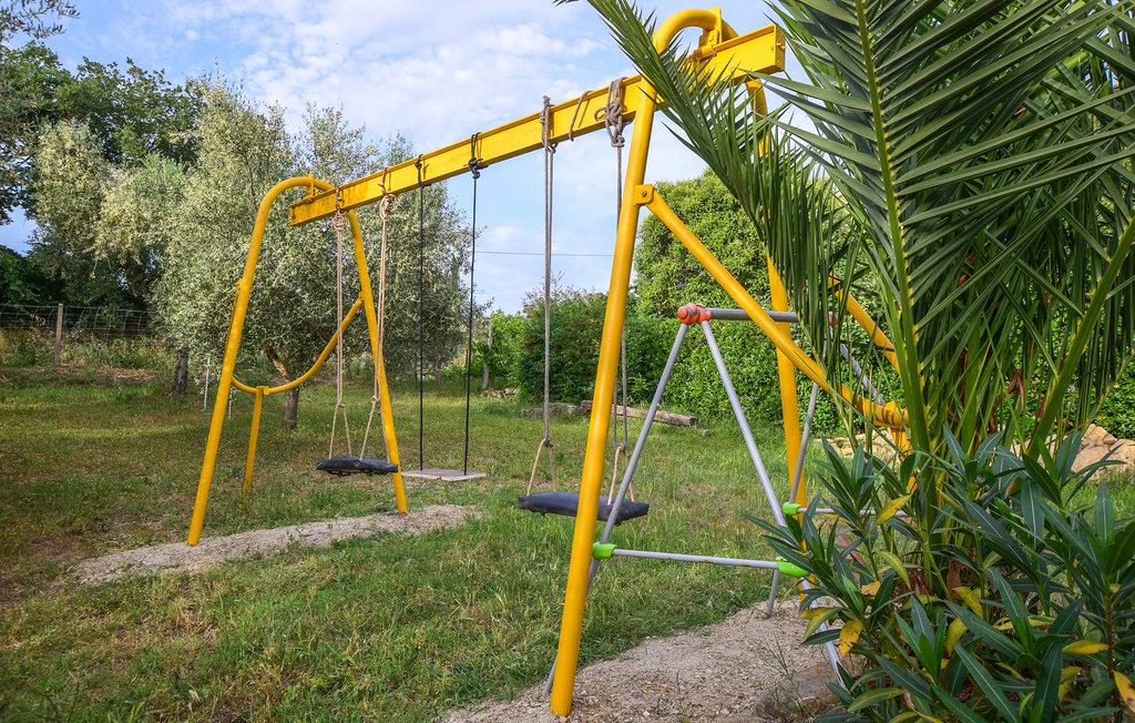 Blandingen af ældre og rustikt design giver jer en helt speciel atmosfære. I finder også et komfortabelt møblement, hvor I kan læne jer tilbage og fordybe jer i ferielæsningen eller nyde gode snakke. Det høje loft, fliserne og de rustikke detaljer får huset til at fremstå flot og naturligt. På den store grund finder I udendørsspil for de unge gæster og et volleyballnet.