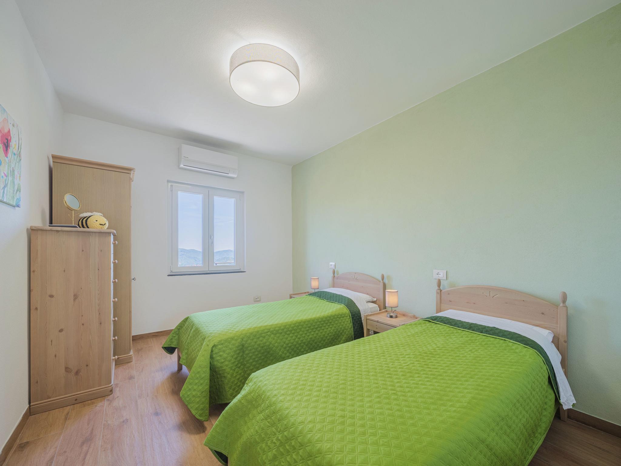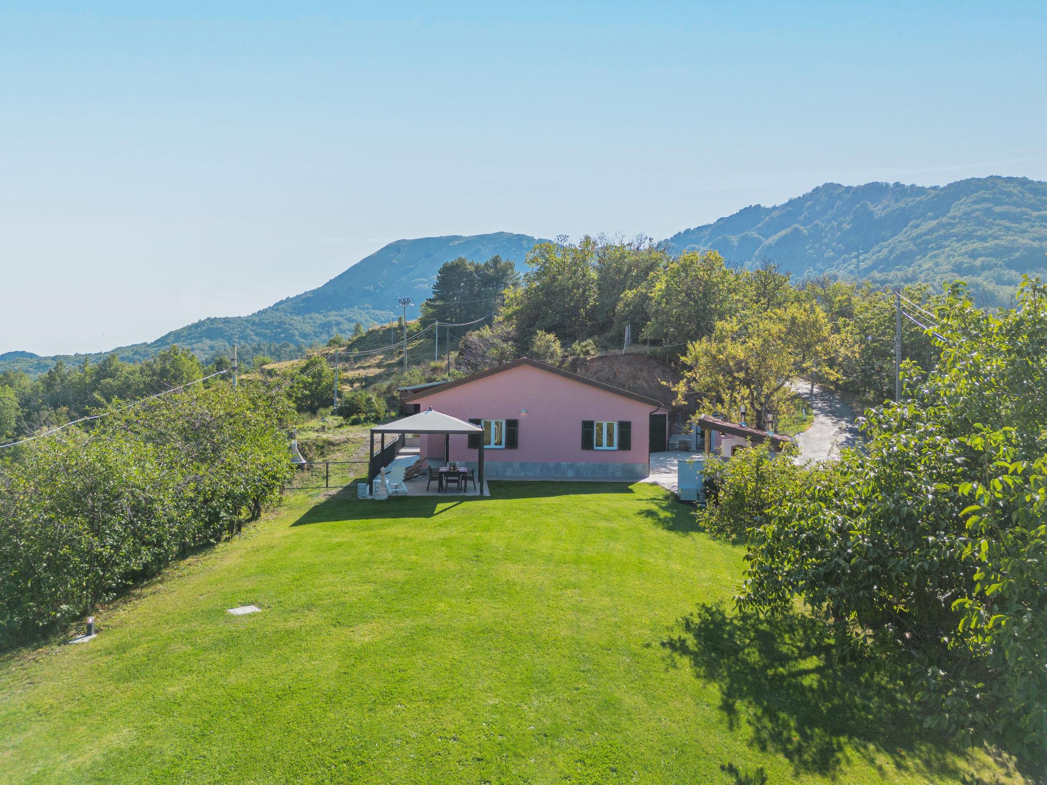 Modern single-family house "La Mela Musona", 650 m a.s.l.. In a quiet, sunny position on top of a hill, 25 km from the sea, in the countryside. Private: garden 350 m2 (fenced) with lawn. Terrace (20 m2), garden furniture, barbecue. In the house: storage room for bicycles. Motor access to the house (2 km mountain road). Parking (for 2 cars) at the house. E-charging station. Grocery 6 km, restaurant 3 km, bus stop 2 km, outdoor swimming pool 3 km. Walking paths from the house 10 m. Nearby attractions: Varese Ligure 14 km, Sestri Levante 25 km. Hiking paths: Passo del Bocco 4 km, Monte Porcile 7 km, Alpe di Maissana 6 km. Please note: car recommended. Local sale of farm products.