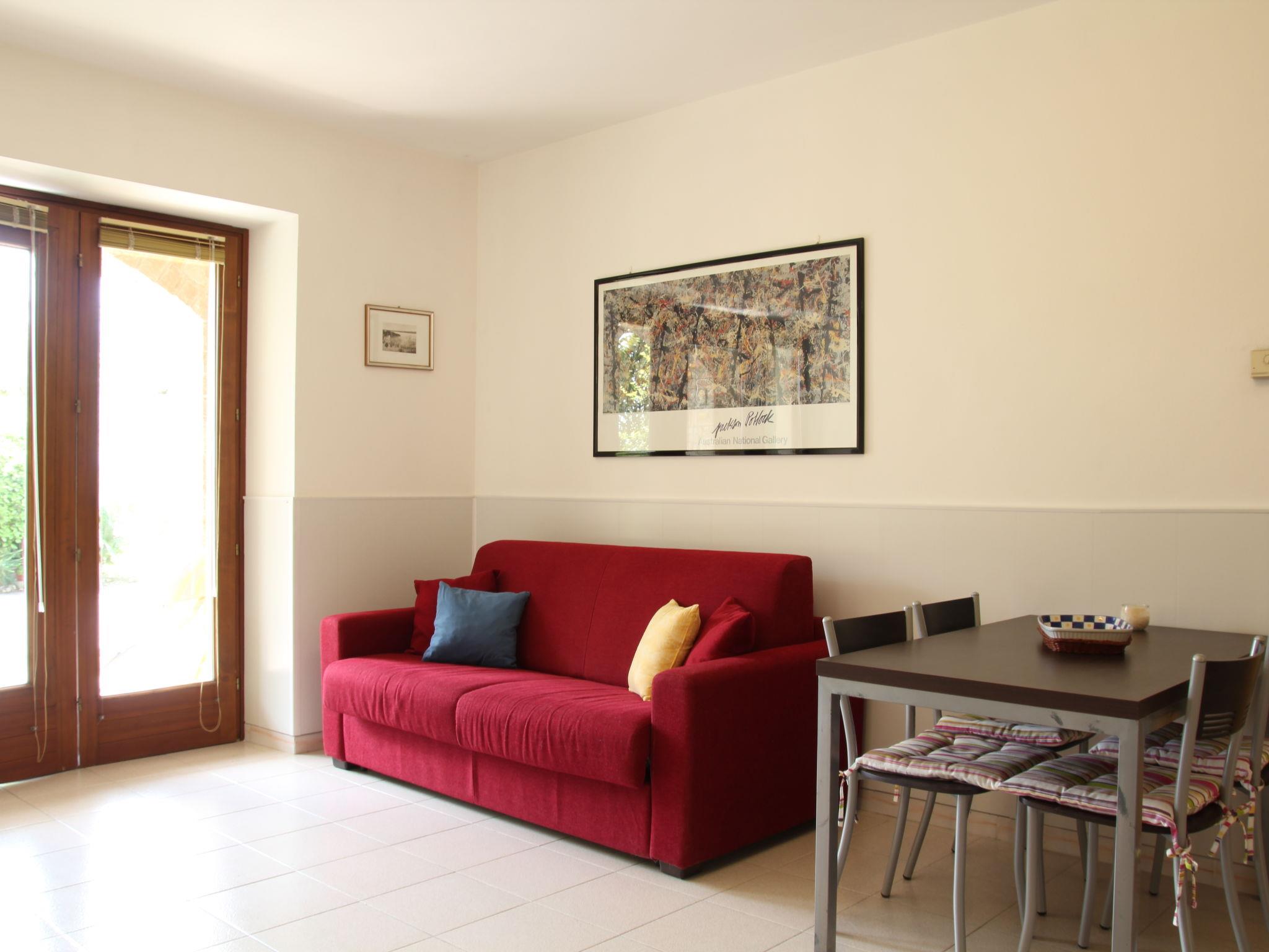 2-room apartment 45 m2, on the ground floor. Comfortable furnishings: living/sleeping room with 1 double sofabed, dining table and satellite TV. Exit to the terrace. 1 double bedroom. Open kitchen (oven, 4 gas rings, freezer, electric coffee machine). Shower/bidet/WC. Oil heating (extra). Terrace roofed. Terrace furniture. View of the garden. Facilities: Internet (WiFi, free). Parking (1 car). Please note: non-smokers only. Maximum 1 pet/ dog allowed. Private entrance. IT023045C2DWI76Z4R