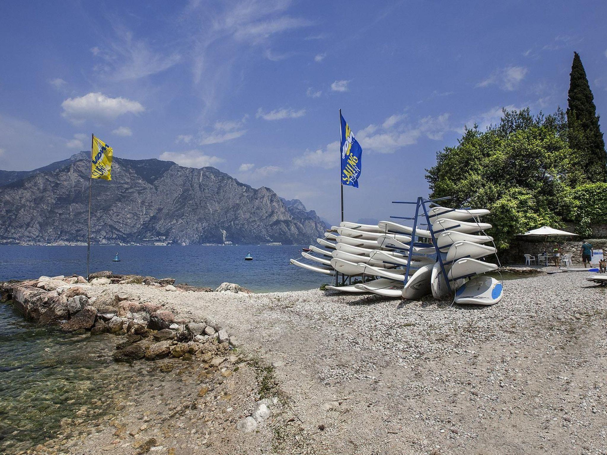 The exterior of the flat is no less impressive, offering postcard views that capture the essence of Lake Garda. The proximity to the beach and the lake (both only 50 metres away) allows you to easily dive into the refreshing waters or simply enjoy the lake breeze. Whether you prefer swimming, sunbathing or water sports, you will have easy access to all these activities.