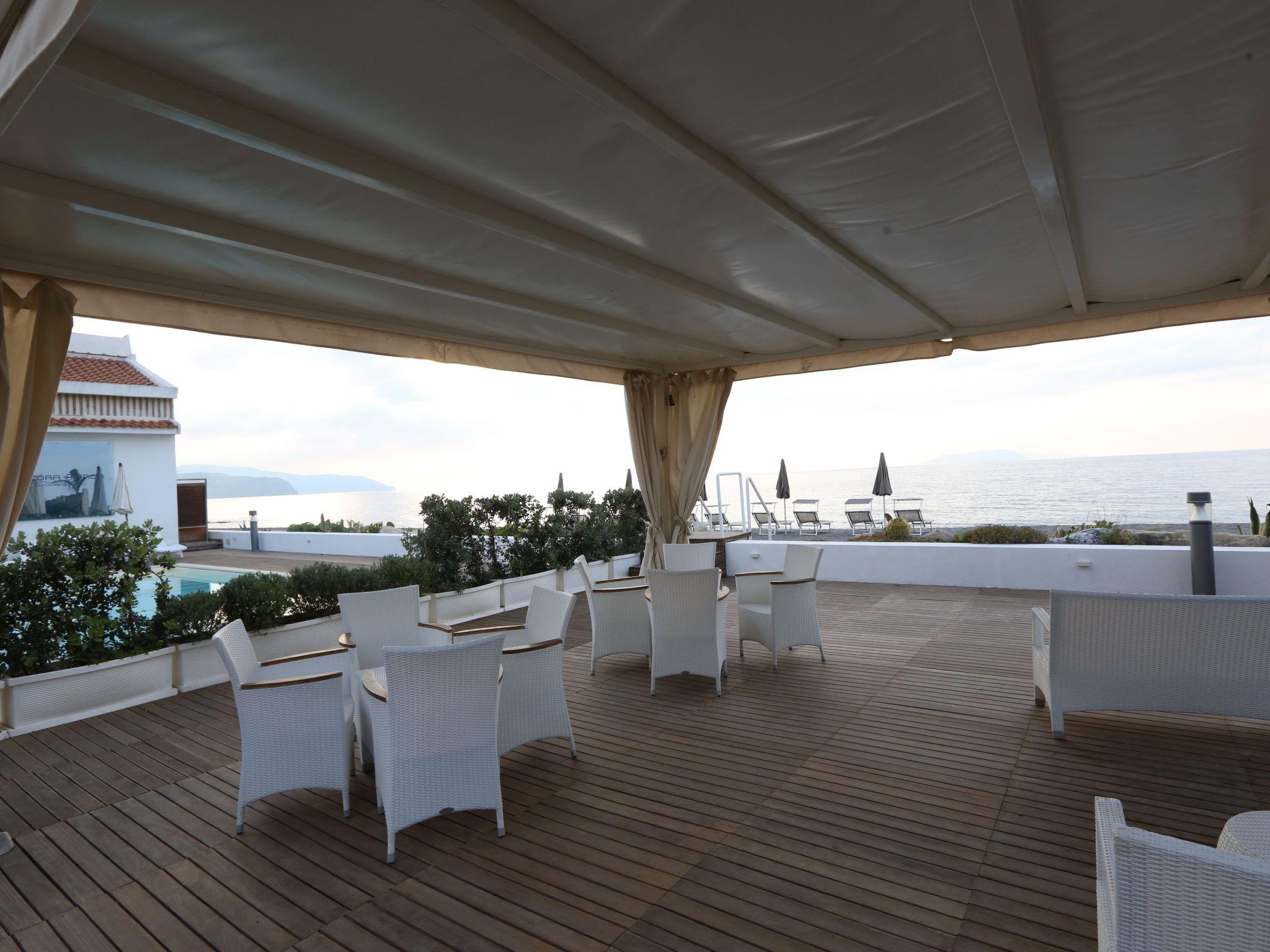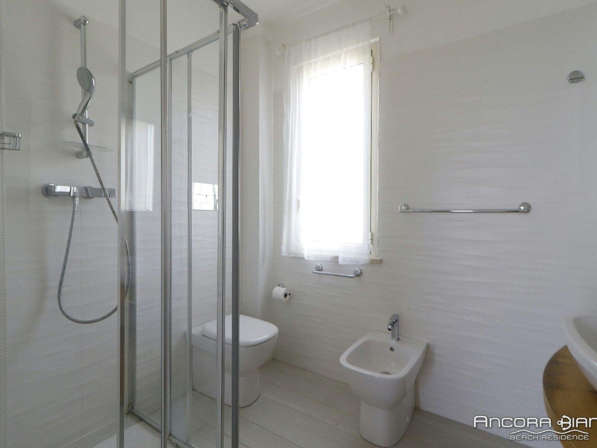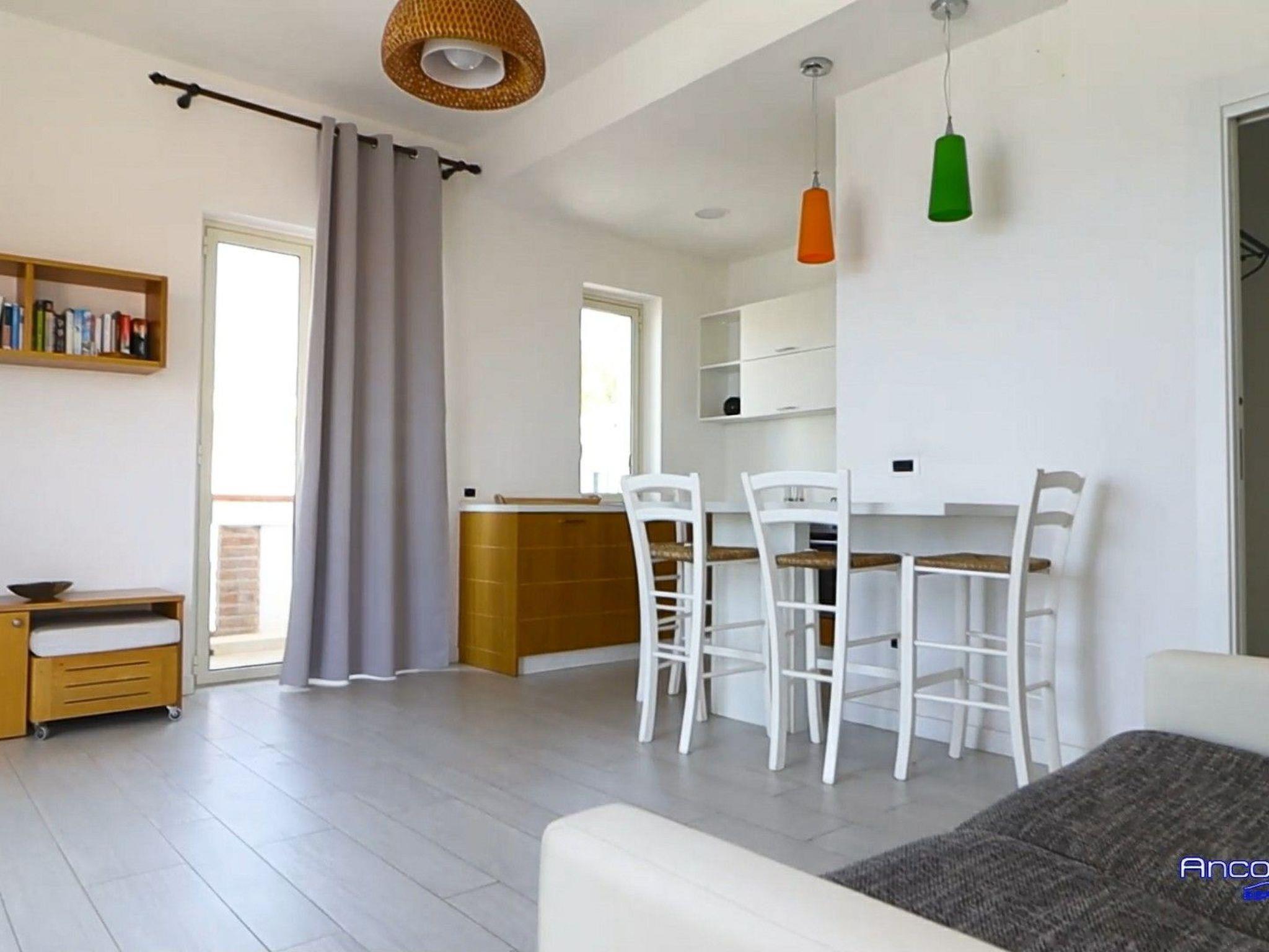 Outside, the flat boasts a spacious terrace where you can enjoy moments of pure relaxation, perhaps reading a book or sipping a freshly brewed coffee. For those wishing to cool off on hot days, the communal swimming pool is the perfect place to take a few strokes or simply relax in the sun. An outdoor shower offers a convenient refreshment after a day spent exploring or sunbathing.