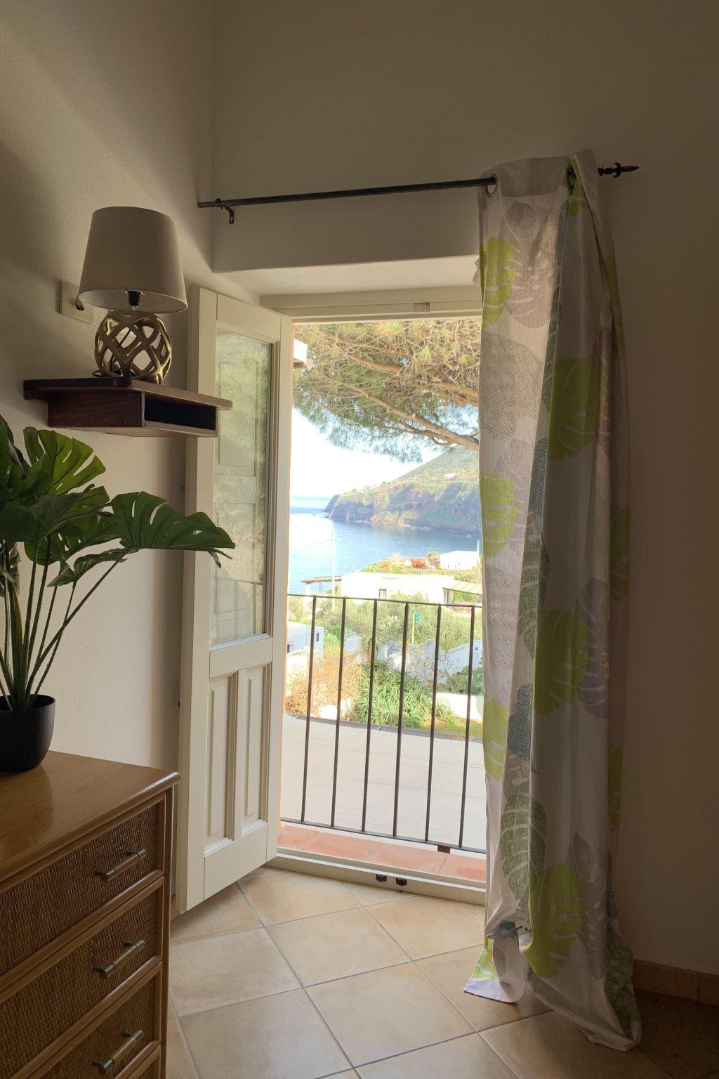 Outside, there is a large covered terrace with wonderful views of the coast to Capo Faro.