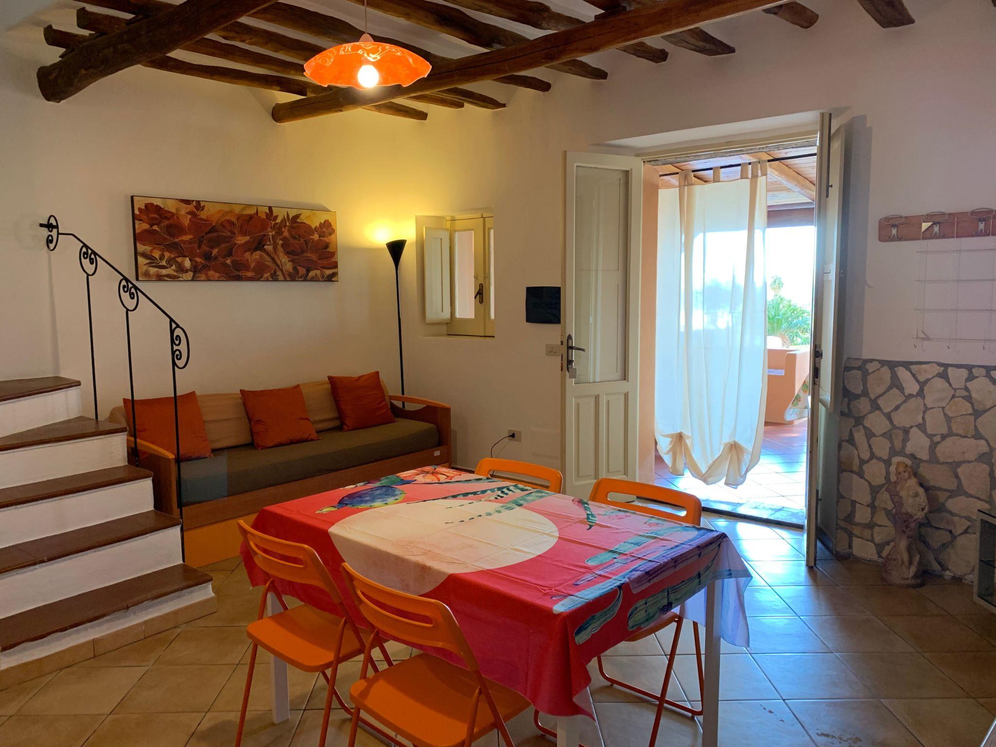 Recenlty renovated, Casa Angelo is on two floors. The sleeping area is located on the first floor, with a double bedroom and a bedroom with a bunk bed. The bathroom, also on the first floor, has a shower. On the ground floor there is a spacious living area with large kitchenette. Thanks to a couch bed it is possible to increase the number of beds available to a maximum of six people (only if it is a family). The apartment is well equipped with television, air conditioning and all the necessary to cook.