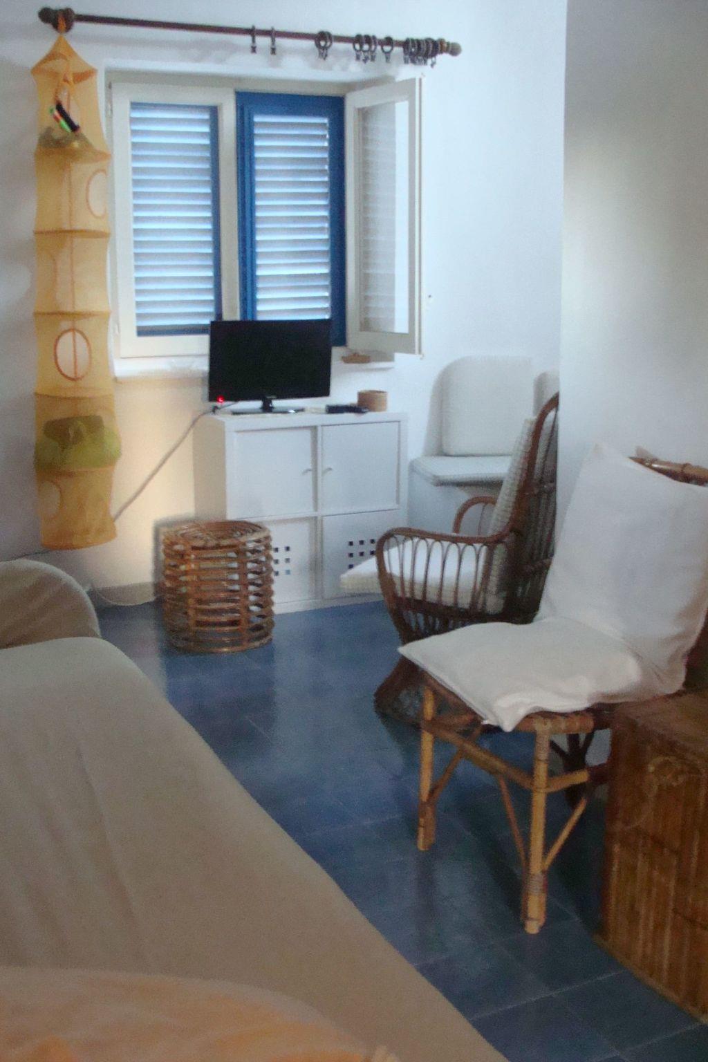 The flat consists of two double bedrooms, two bathrooms with shower, kitchenette with oven and gas cooker, small living area with TV. The rooms are air-conditioned Large living room and dining area are organised under the pergola outside the house. On the kitchen side there is a large solarium with deckchairs and outdoor shower.