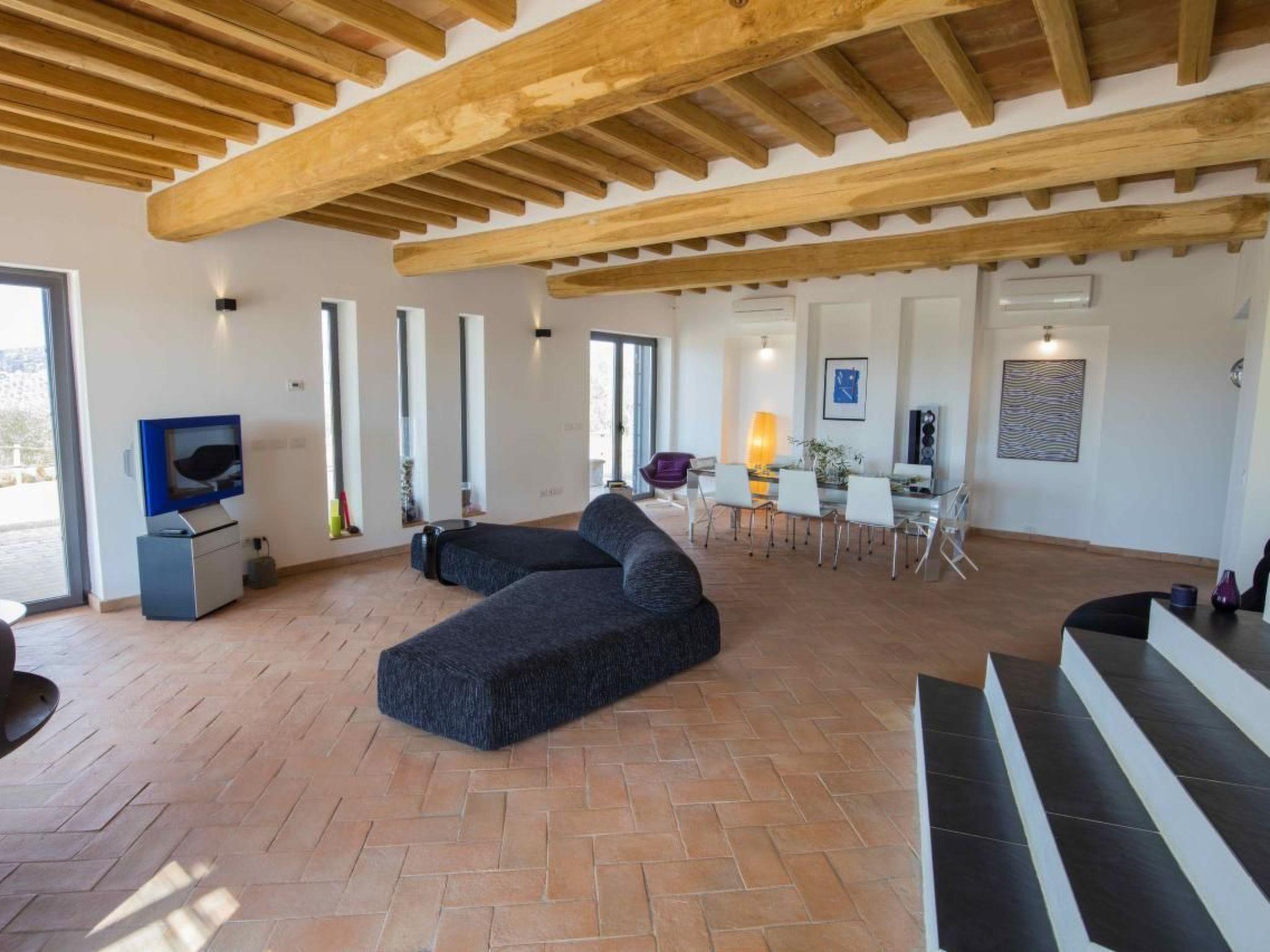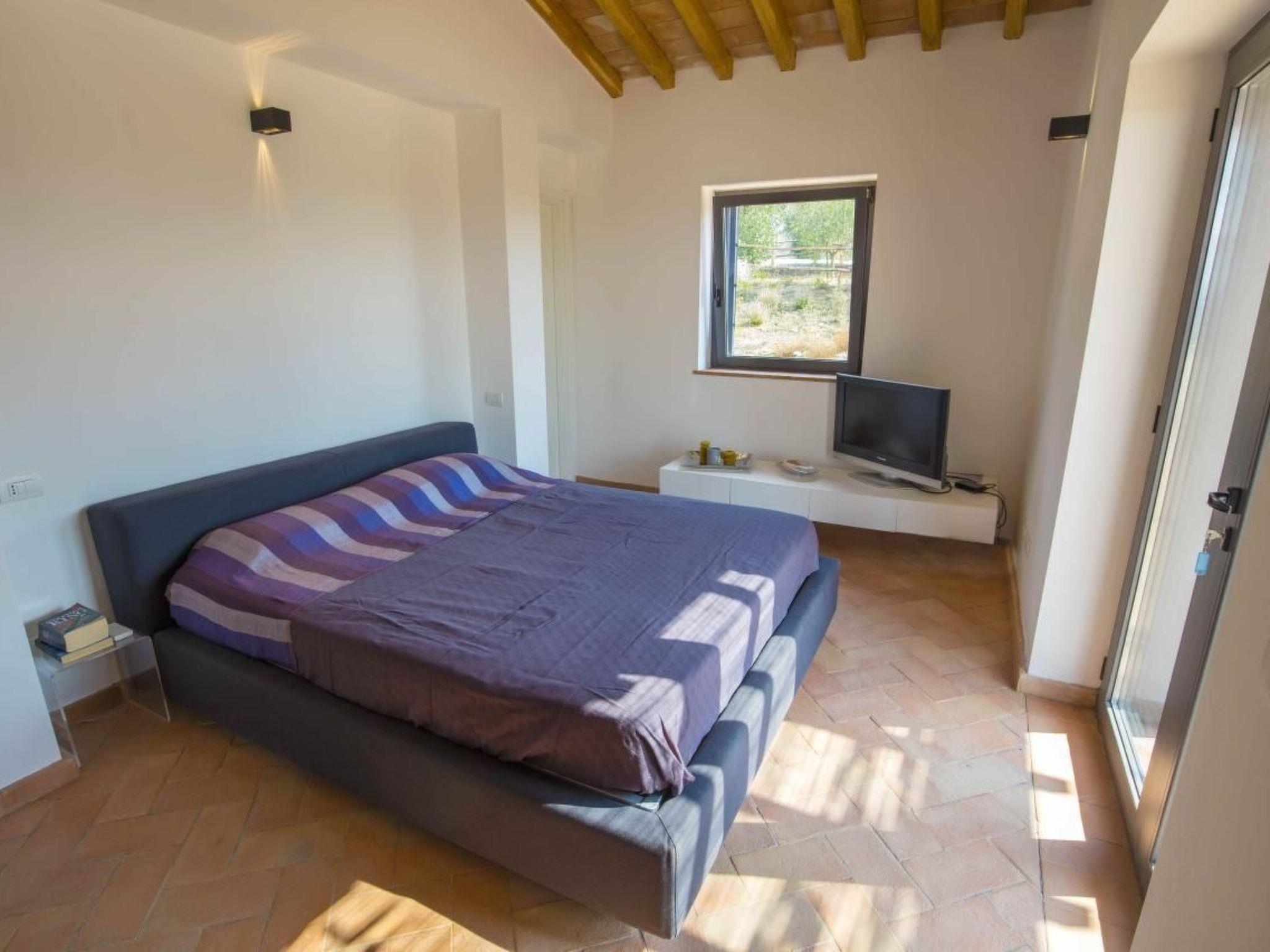 - Typical Tuscan property surrounded by 1,300 olive trees on 6.5 hectares of land with fantastic, unobstructed views towards the sea and the surrounding hills, ideally accommodating up to 6 guests in 3 bedrooms, each with its own bathroom, one of which is a suite of around 80 m². However, up to 8 people can be accommodated as there are 2 double beds in the suite. The property is located about 500 m from the nearest neighbour. Discretion is therefore guaranteed and music lovers can let the notes of Wagner ring out over the olive grove uninhibited. Swimming pool and sauna.