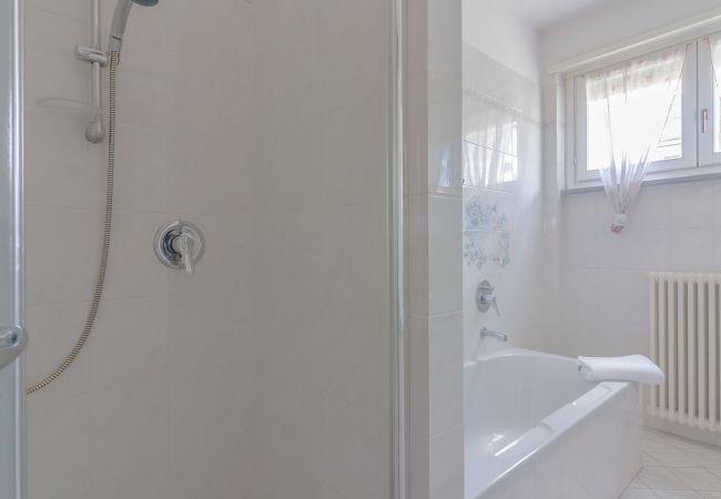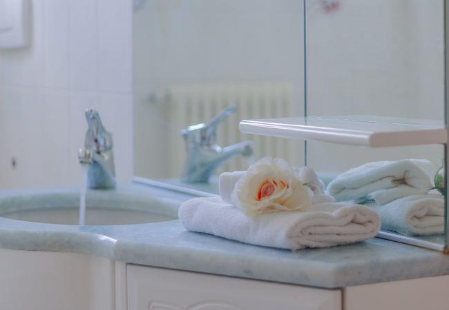 The apartment consists of an entrance hall, living room with two comfortable sofas, TV and dining table, equipped kitchen, a master bedroom with a double bed and a second bedroom with two single beds. T here is a full bathroom complete of shower, sink, bidet and WC, and an additional second bathroom with WC, sink and washing machine. The apartment also has a private garage.