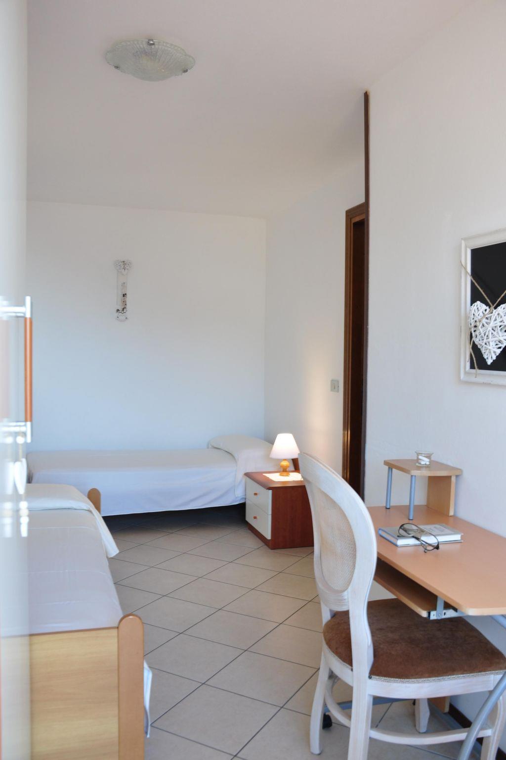The holiday flat is located on the ground floor and has one bedroom with a double bed (160 x 190cm) and one bedroom with two single beds (80 x 190cm) ), a bathroom with shower and bidet and a living room-kitchen with table and chairs, sofa and satellite TV. The kitchen is equipped with a gas cooker, microwave oven, coffee machine, toaster and refrigerator with freezer.