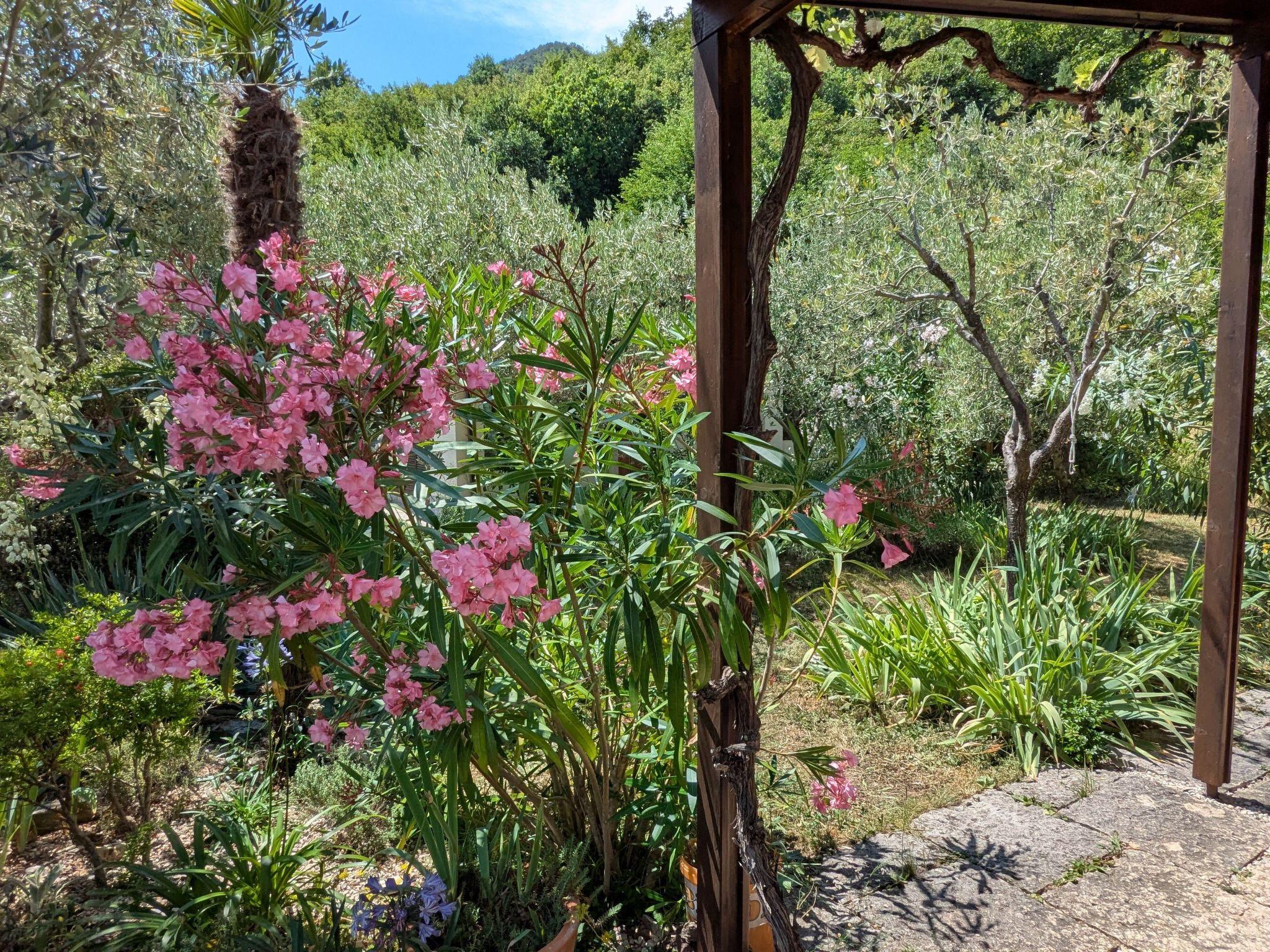 The picturesque garden was designed by the owner, a landscape architect, and is maintained in a natural way. The main feature is an olive grove ("Oliveto"), with an underplanting of lavender and irises as well as other typical Mediterranean plants of the Lake Garda region.