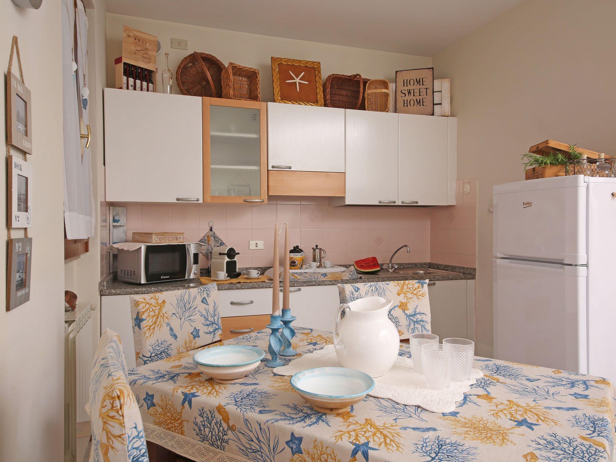 The two-room apartment, finished with quality materials, has an entrance door with a security lock, solid wood doors and window frames, double glazing and solid but pleasant grilles at each window . It has a spacious living room very nice to the eye with a practical and comfortable sofa bed, TV, sideboard, table and chairs in solid wood. Kitchenette fully equipped for 4 people with crockery, pots and pans and a microwave oven fridge and freezer which are delivered thoroughly cleaned , working and ready to use.