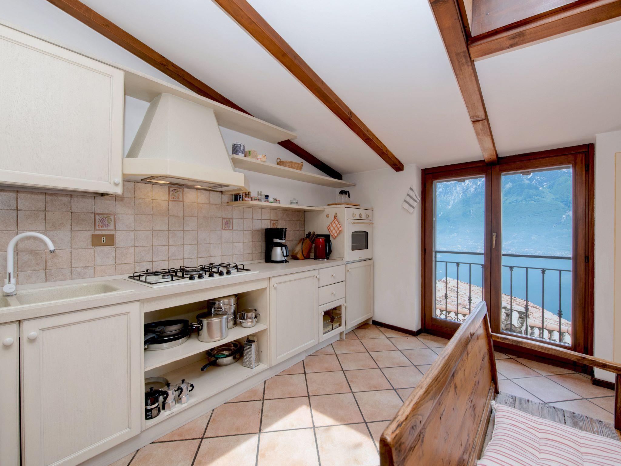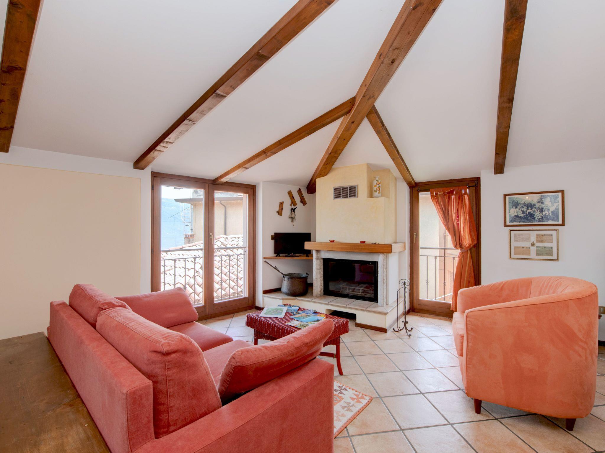 The 'Attico' flat invites you to stay in a spacious and comfortable environment. With a breathtaking view of the lake, the living room offers a cosy fireplace next to which to relax, a fully equipped kitchenette with dishwasher and a satellite TV for your relaxing moments. The two bedrooms are furnished to ensure a restful sleep; one can be configured with three single beds or a double bed plus a single, the other with a double bed, next to a bathroom equipped with a shower. Spread over two levels, the flat is ideal to comfortably accommodate up to five people.