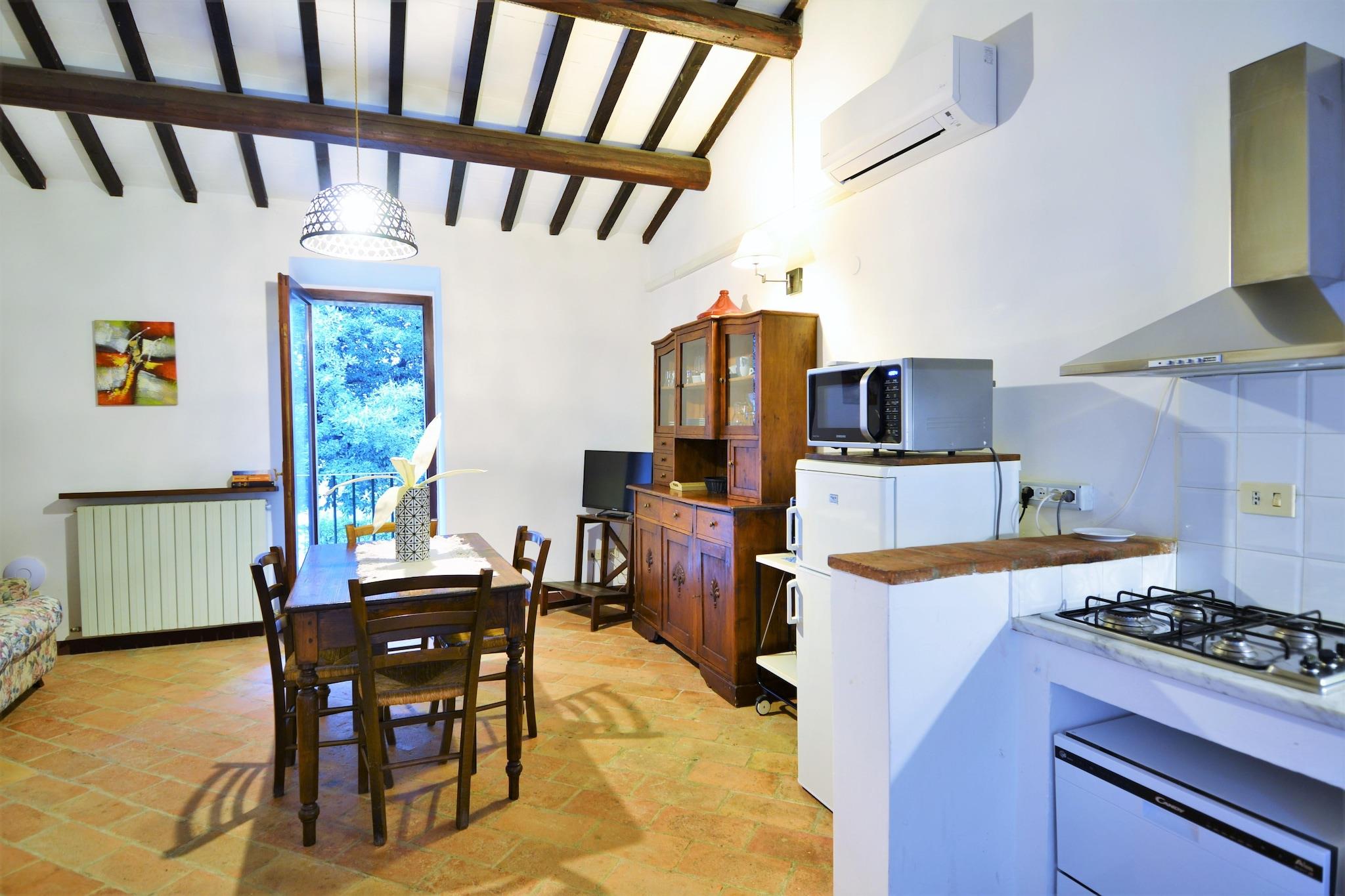 Velkommen til Umbriens grønne hjerte – hvor rustik charme møder tidløs ro. Denne dejlige lejlighed i stueetagen, en del af et kærligt restaureret bondehus fra det 12. århundrede, er den perfekte tilflugtssted for familier, der søger fred, komfort og et strejf af italiensk autenticitet. Gå udenfor for at nyde en morgenkaffe på din private terrasse, omgivet af bølgende bakker og blød fuglesang, eller køle af med en dukkert i den fælles swimmingpool under den umbriske sol. Alt hvad du behøver er lige ved hånden – dagligvarebutikker og bagerier ligger kun 200 meter væk, hvilket gør det nemt at leve som en lokal. Dette hjem er perfekt beliggende mellem Perugia (13 km) og Trasimenosøen (20 km) og er en god base for at udforske regionens skatte. Gå en tur i Perugias pulserende gader fyldt med kunst, musik og hyggelige caféer, eller tilbring en fredelig eftermiddag ved Trasimenosøens glitrende vand. En kort køretur tager dig til Assisi (30 km), hvor den majestætiske Sankt Frans-basilika står som et tidløst symbol på skønhed og tro. Tilbage i din landlige oase kan dagen udfolde sig i dit eget tempo. Udfordr nogen til en venskabelig kamp på tennisbanen, slap af i haven med en bog, eller saml jer til en grillmiddag under stjernerne. Med sin indbydende indretning, gennemtænkte faciliteter og rolige atmosfære indfanger denne charmerende lejlighed den sande essens af Umbrien - varm, enkel og uendeligt indbydende.