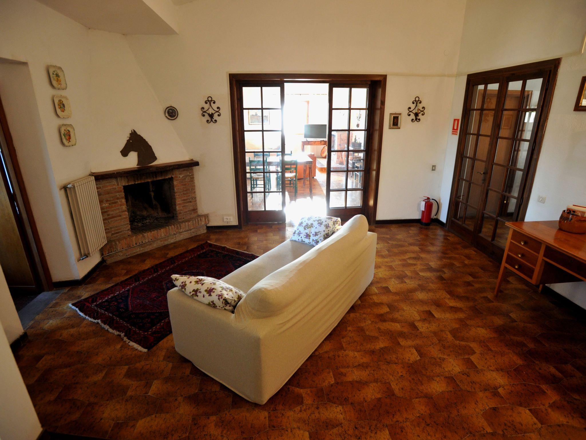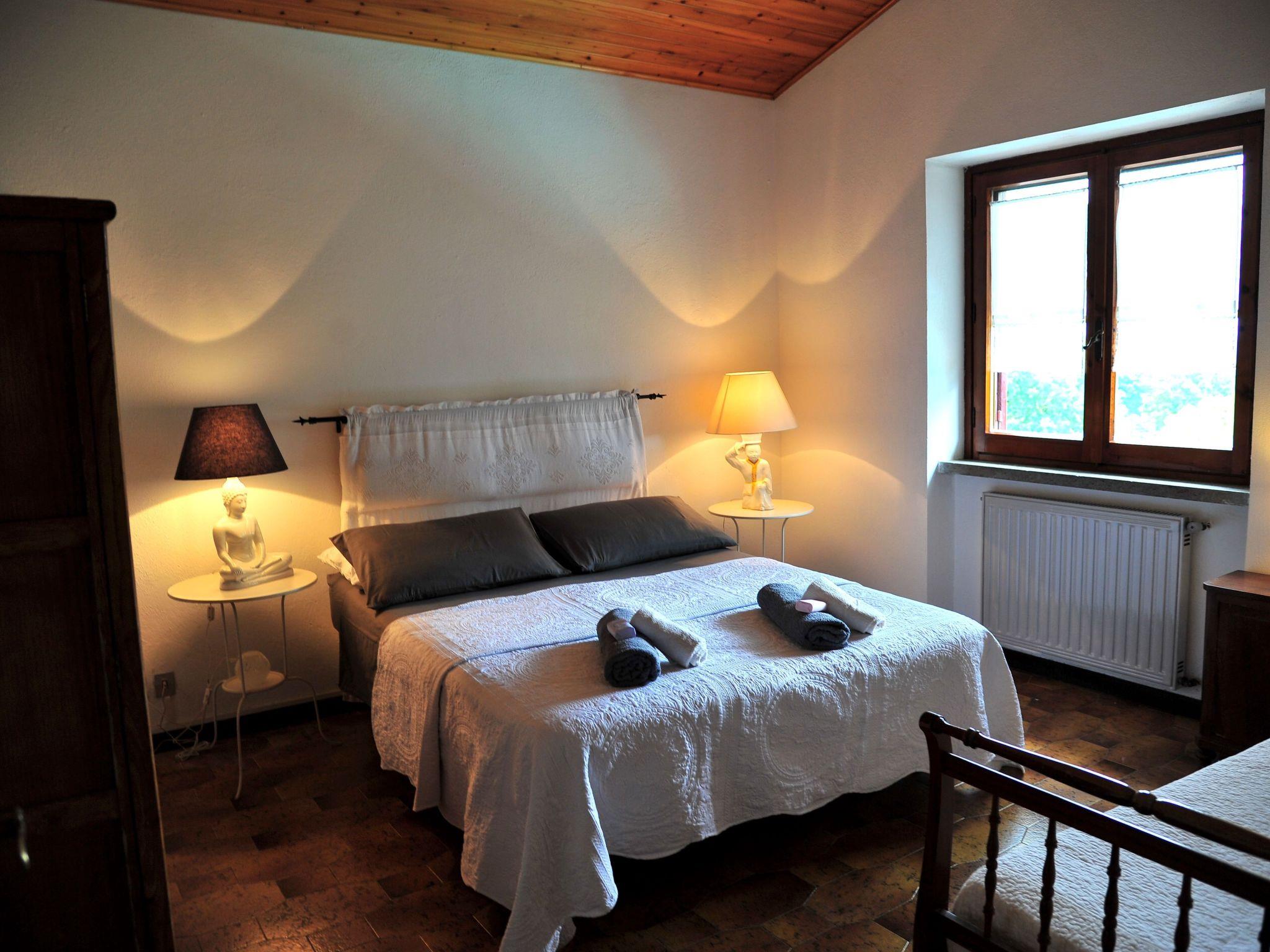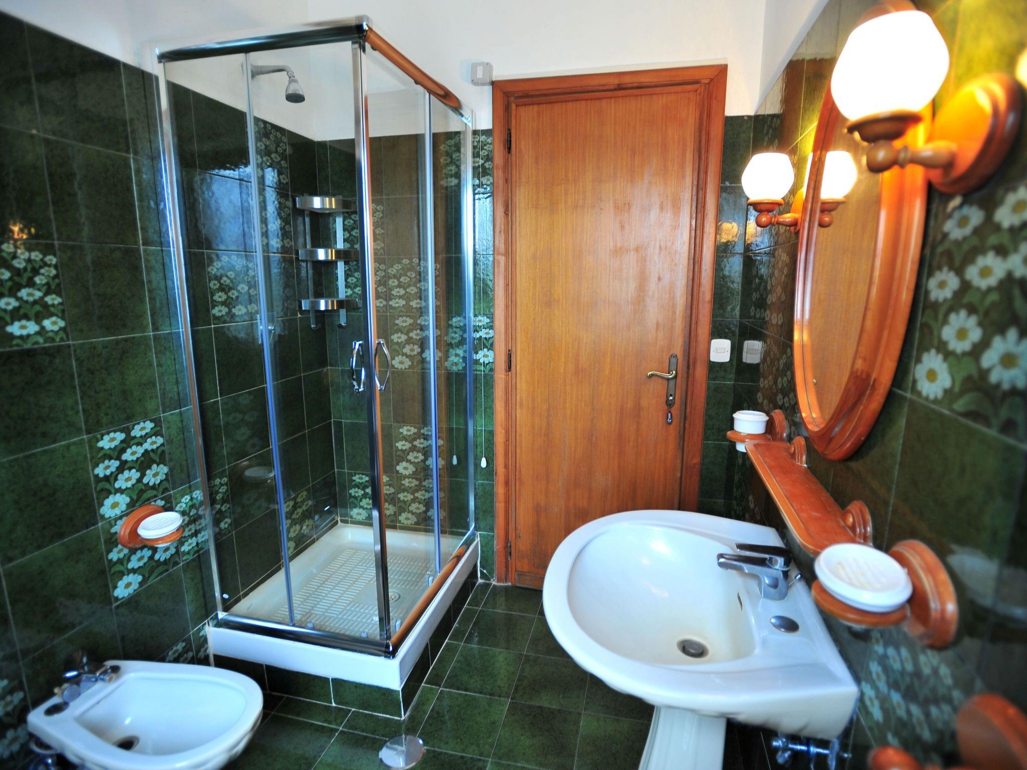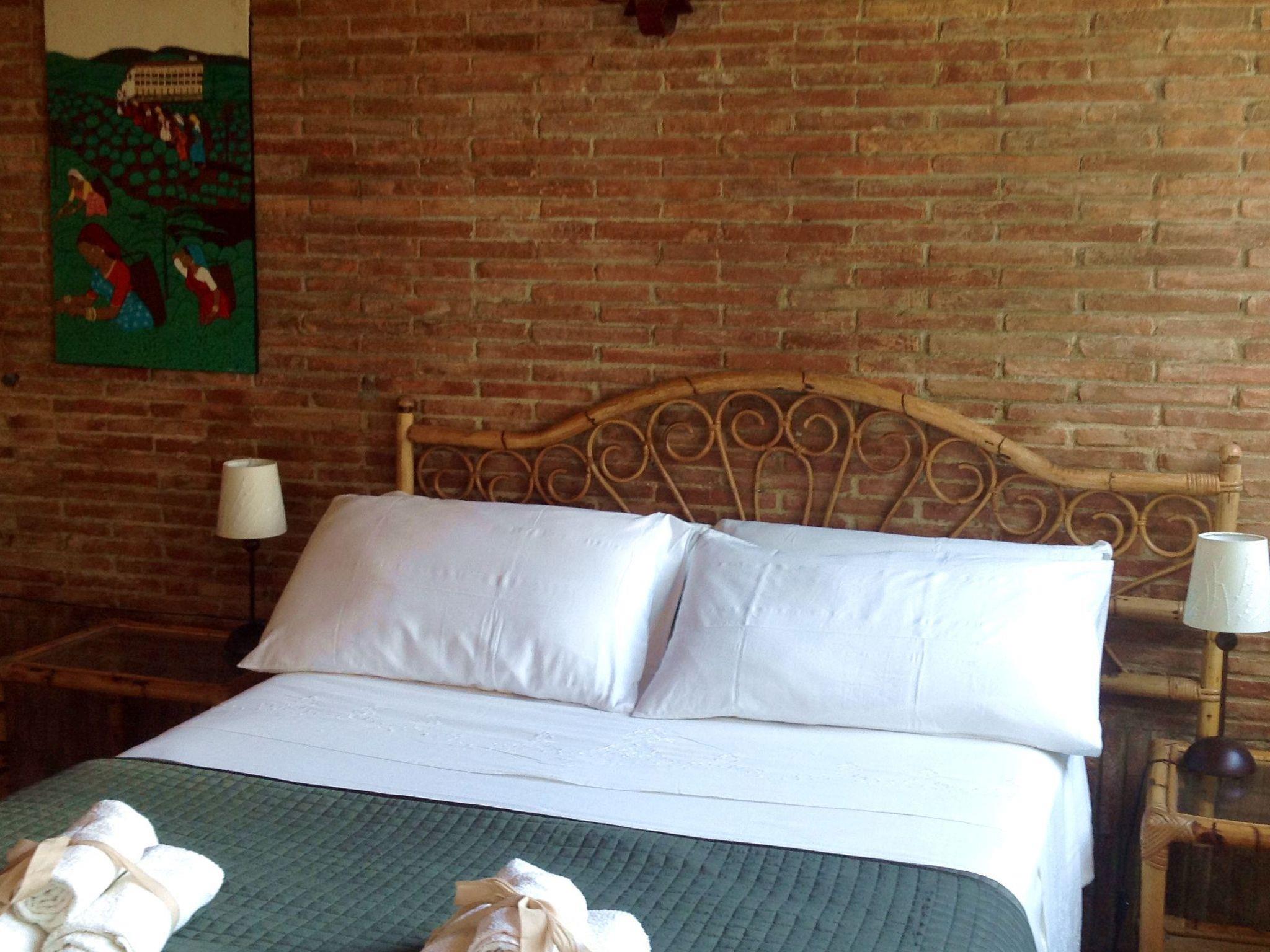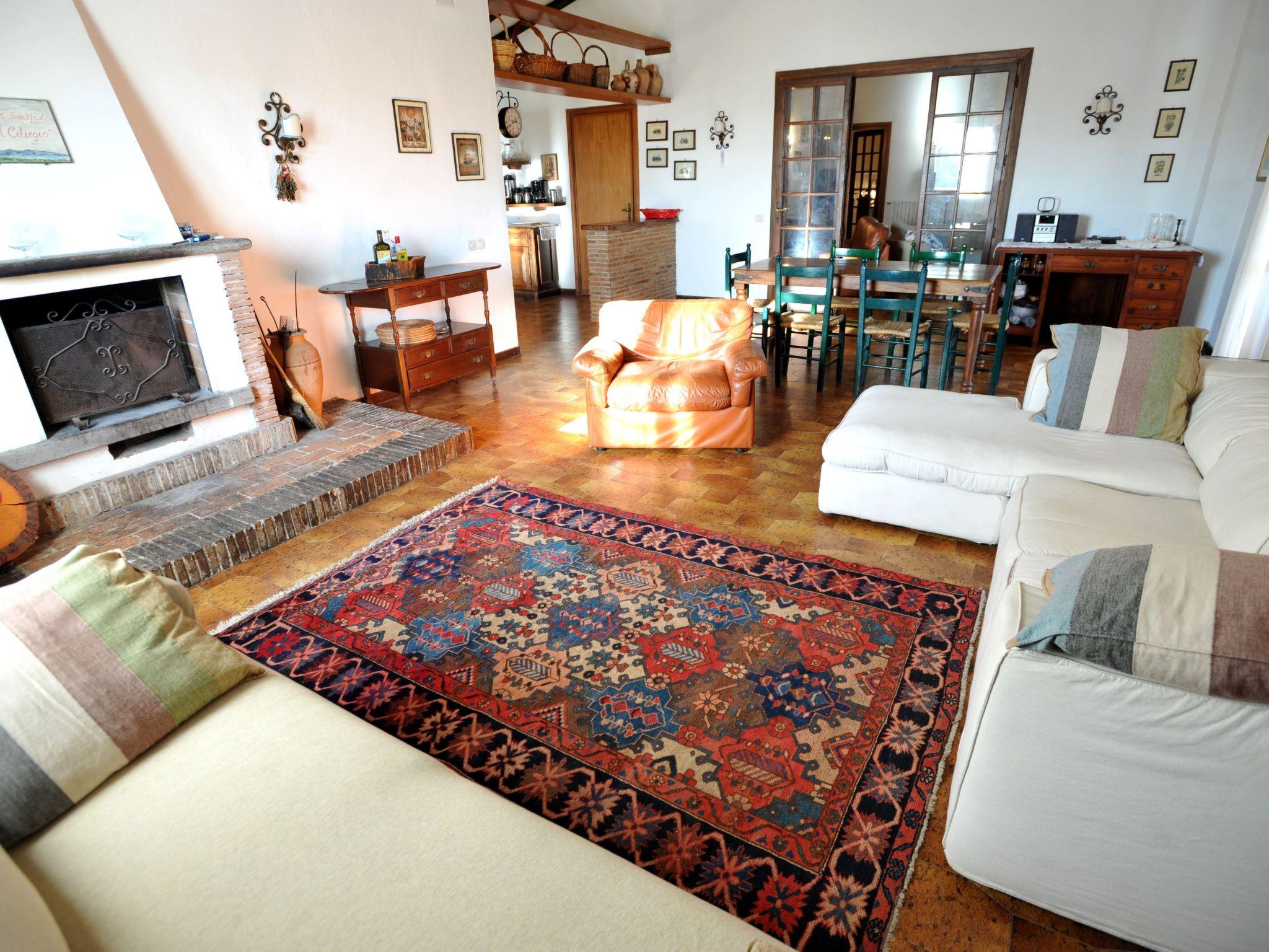 The villa consists of a main flat, with 4 bedrooms, 3 doubles and 1 triple, 2 bathrooms with shower, 1 large fully equipped kitchen with gas cooker, electric oven, fridge/freezer, dishwasher and cooking utensils, double living room with sofas and tables, panoramic terrace overlooking the pool and the hills of Lake Bracciano; a smaller flat, with 1 double bedroom, 1 triple, 1 bathroom with shower.