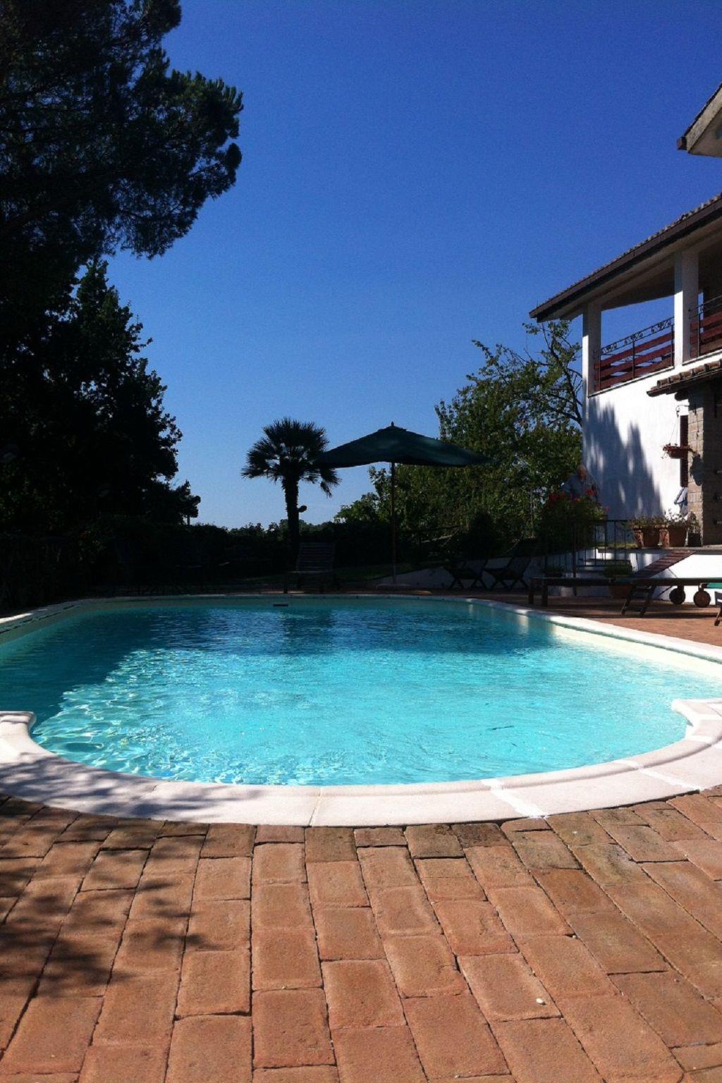 Villa with swimming pool amidst the woods of Manziana and the green hills of Lake Bracciano, a few kilometres from Rome. The villa is located on a hill 2 km from the centre of Manziana. Surrounded by greenery, it is ideal for a pleasant stay in the Latium countryside, in an area rich in natural resources, woods, lakes, thermal and archaeological sites. It is an independent villa with internal parking and private swimming pool.