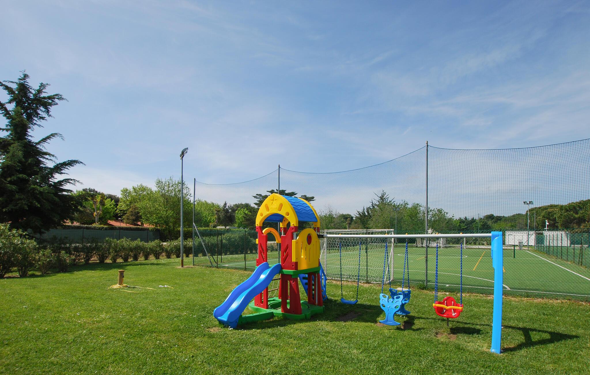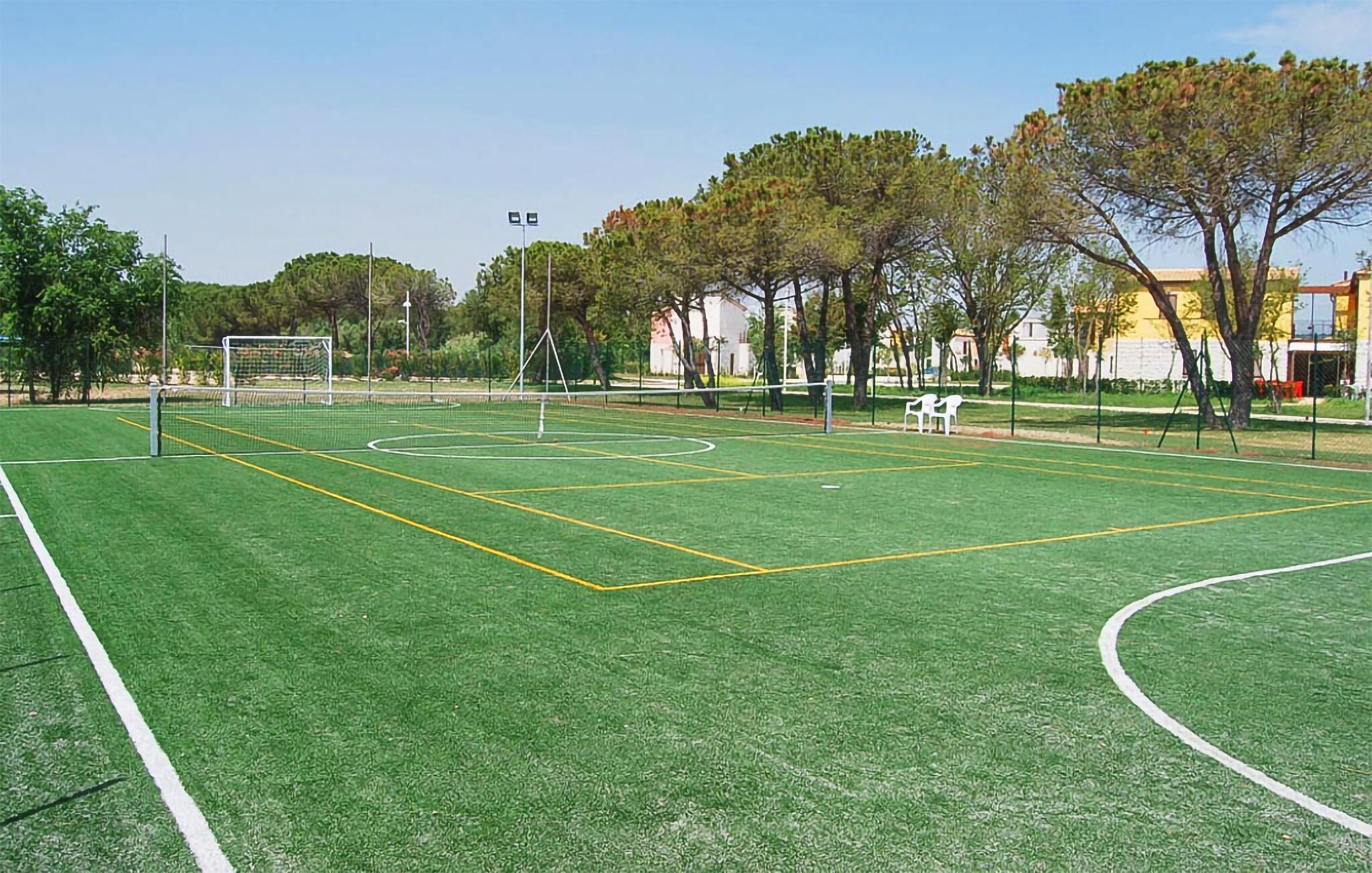 I boligkomplekset finder I flere fælles pools, hvor I kan dyppe jer og solbade langs kanten. Der er også en multifunktionel sportsplads til tennis, fodbold eller basketball, ligesom jeres børn kan løbe ubekymret rundt på legepladsen og hygge sig.