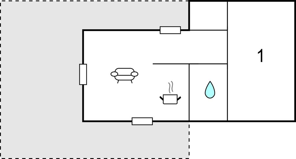 Komb. spisestue/køkken - 2 Sovepladser. (Sofa, madras eller lignende).