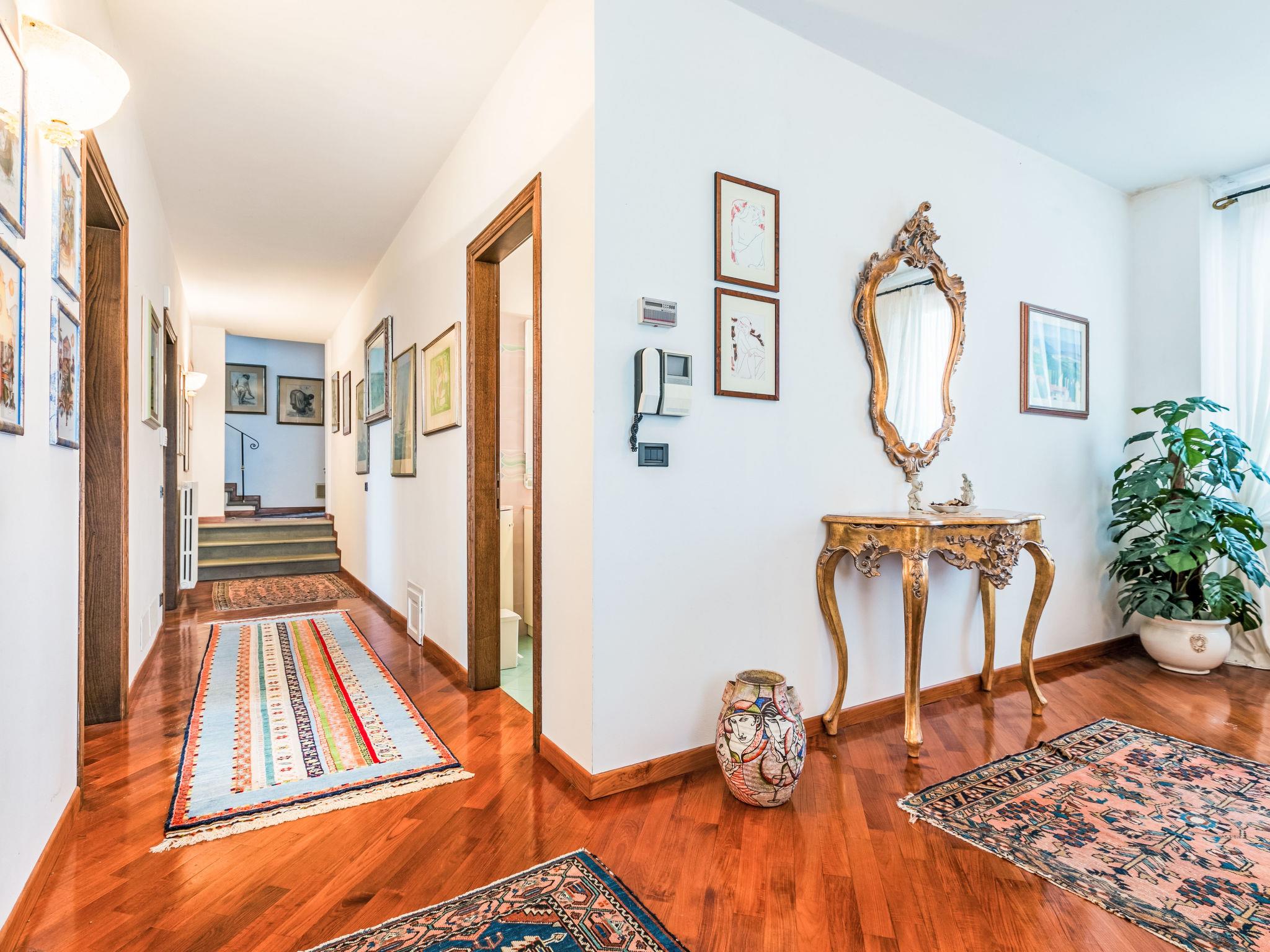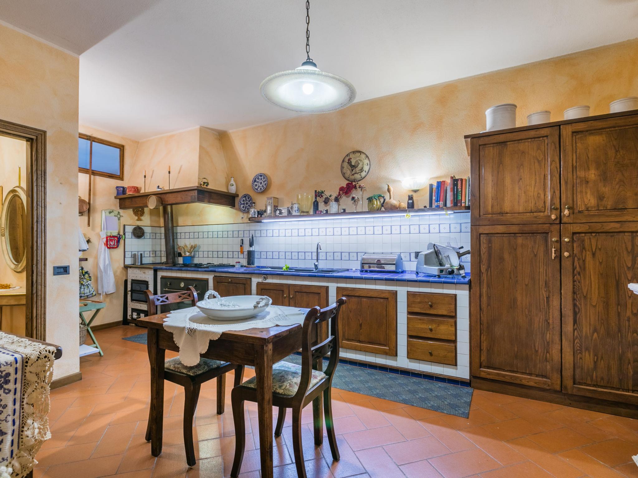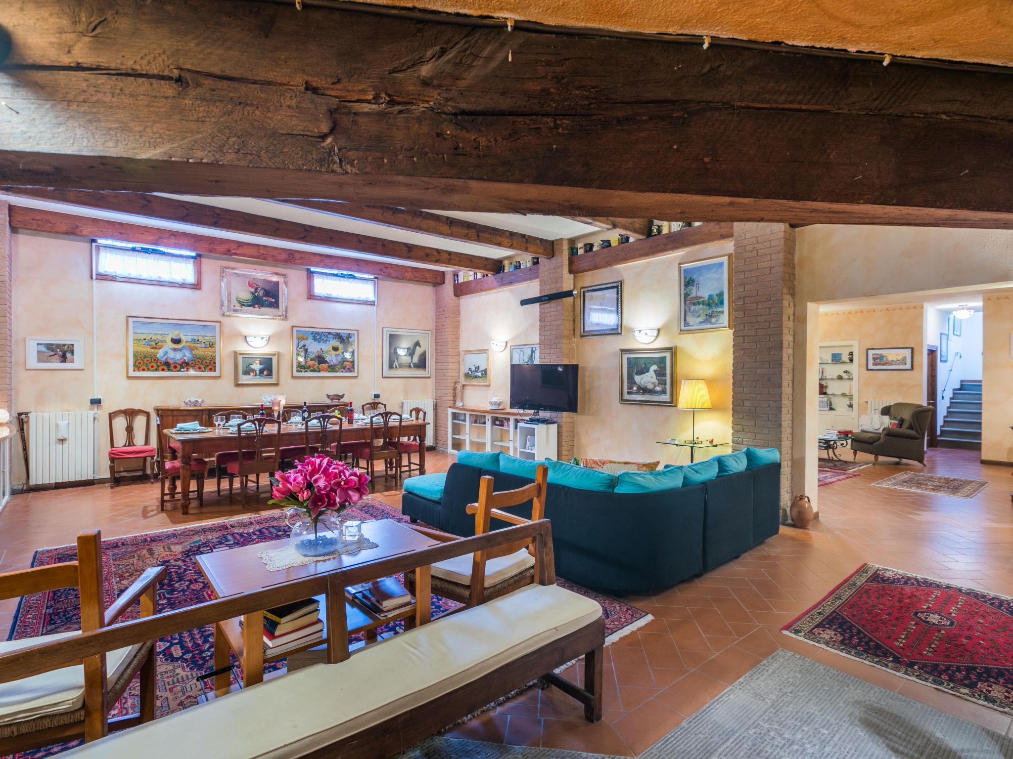 "Villa Silvana", 9-room villa 350 m2 on 4 levels. Spacious, tasteful and stylish furnishings: open entrance hall. Open dining room. Open large living room with open-hearth fireplace and TV (flat screen). Exit to the terrace, to the swimming pool. Large kitchen (oven, dishwasher, 4 induction hot plates, Gas stove, 2 gas rings, toaster, kettle, microwave, grill, electric coffee machine) with dining table. Exit to the terrace. Shower/bidet/WC. On the lower ground floor: open large dining room. Open large living/dining room with open-hearth fireplace. Playroom. Large kitchen (oven, dishwasher, Gas stove, 6 gas rings, toaster, kettle, microwave, freezer, electric coffee machine). Shower/bidet/WC. Upper floor: 2 double bedrooms. 1 large room with Dressing room with 2 beds (120 cm), bath/shower/bidet/WC and TV (flat screen), air conditioning. Exit to the balcony. 2 showers/bidet/WC. 2nd upper floor: 1 double bedroom with sloping ceilings with panoramic window. Exit to the balcony. Gas heating, air-conditioning. Parquet floors, natural stone floors. 2 terraces covered, patio, lawn. Terrace furniture, barbecue, deck chairs, covered balcony, sitting area, box-room. Marvellous panoramic view of the countryside. Facilities: washing machine, dryer, iron, mosquito net, children's high chair, baby cot for up to 2 year olds, hair dryer. Internet (WiFi, free). Parking (fenced 4 cars). Please note: suitable for families. Non-smokers only. Private entrance, smoke alarm, fire extinguisher. The pool mentioned in the description is for private use. IT048054C26OX2COPC