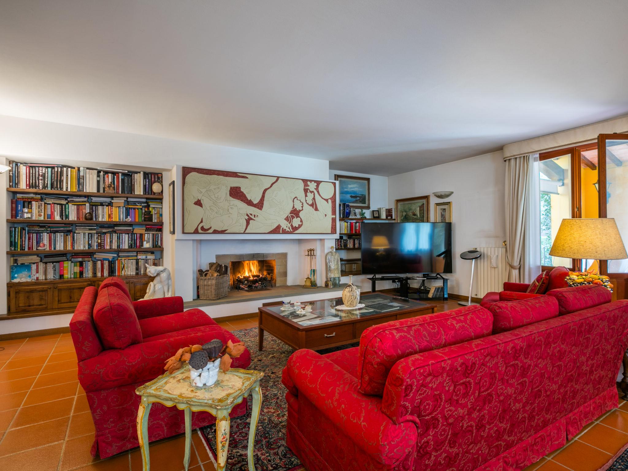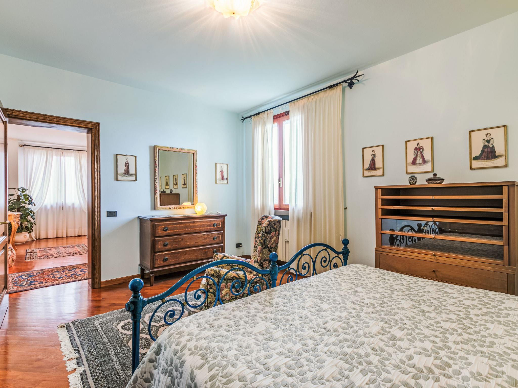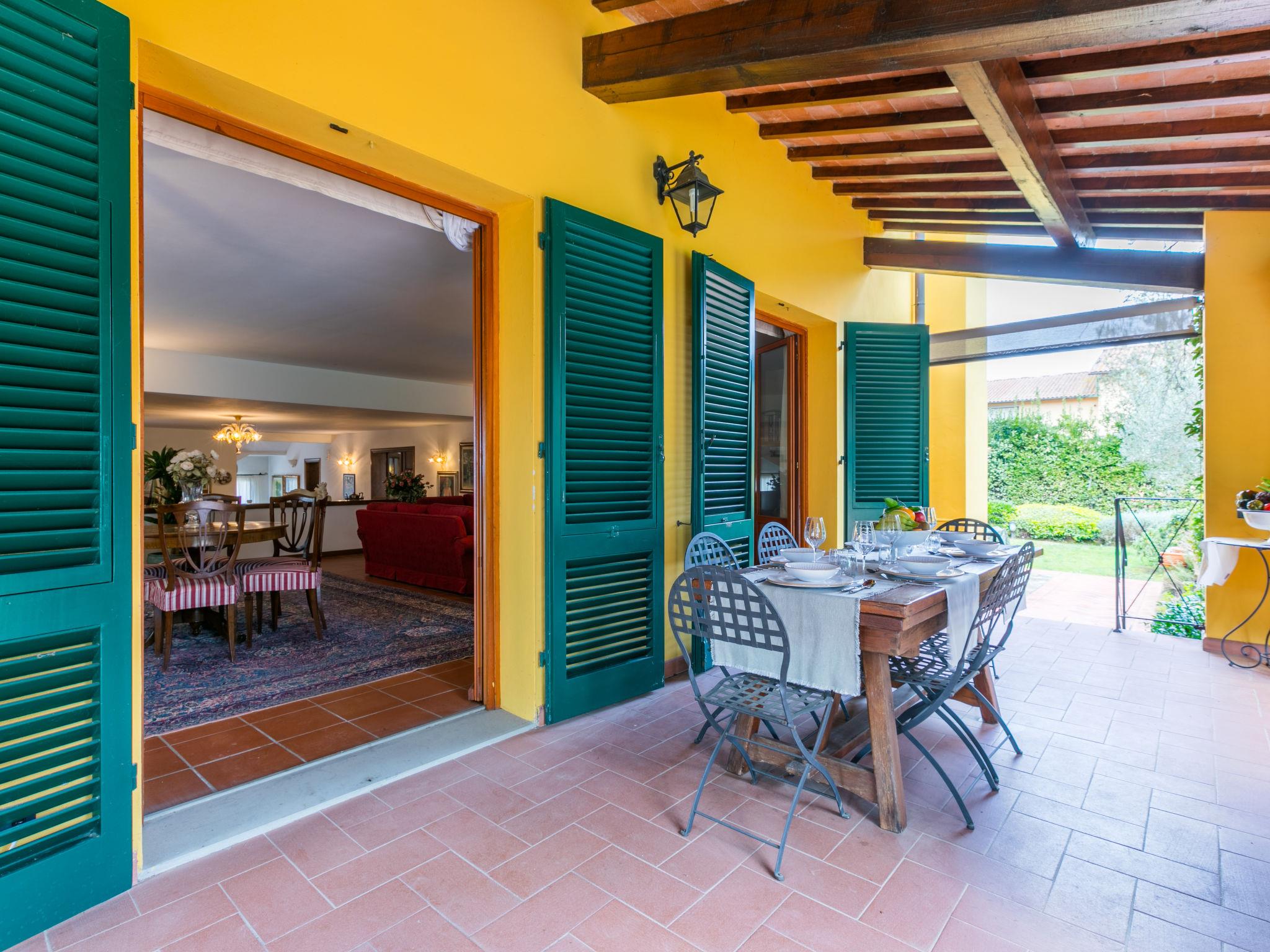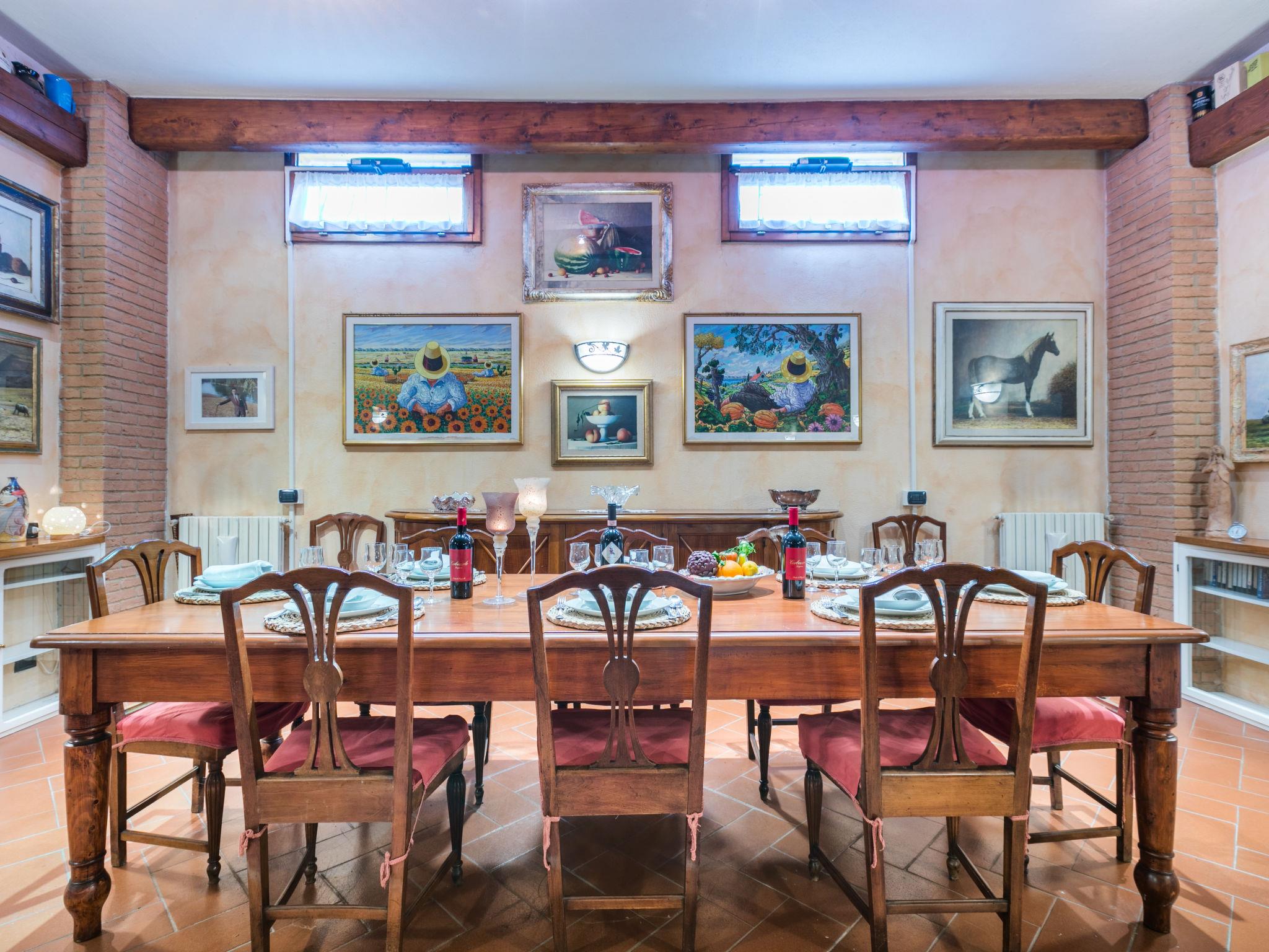 "Villa Silvana", 9-room villa 350 m2 on 4 levels. Spacious, tasteful and stylish furnishings: open entrance hall. Open dining room. Open large living room with open-hearth fireplace and TV (flat screen). Exit to the terrace, to the swimming pool. Large kitchen (oven, dishwasher, 4 induction hot plates, Gas stove, 2 gas rings, toaster, kettle, microwave, grill, electric coffee machine) with dining table. Exit to the terrace. Shower/bidet/WC. On the lower ground floor: open large dining room. Open large living/dining room with open-hearth fireplace. Playroom. Large kitchen (oven, dishwasher, Gas stove, 6 gas rings, toaster, kettle, microwave, freezer, electric coffee machine). Shower/bidet/WC. Upper floor: 2 double bedrooms. 1 large room with Dressing room with 2 beds (120 cm), bath/shower/bidet/WC and TV (flat screen), air conditioning. Exit to the balcony. 2 showers/bidet/WC. 2nd upper floor: 1 double bedroom with sloping ceilings with panoramic window. Exit to the balcony. Gas heating, air-conditioning. Parquet floors, natural stone floors. 2 terraces covered, patio, lawn. Terrace furniture, barbecue, deck chairs, covered balcony, sitting area, box-room. Marvellous panoramic view of the countryside. Facilities: washing machine, dryer, iron, mosquito net, children's high chair, baby cot for up to 2 year olds, hair dryer. Internet (WiFi, free). Parking (fenced 4 cars). Please note: suitable for families. Non-smokers only. Private entrance, smoke alarm, fire extinguisher. The pool mentioned in the description is for private use. IT048054C26OX2COPC