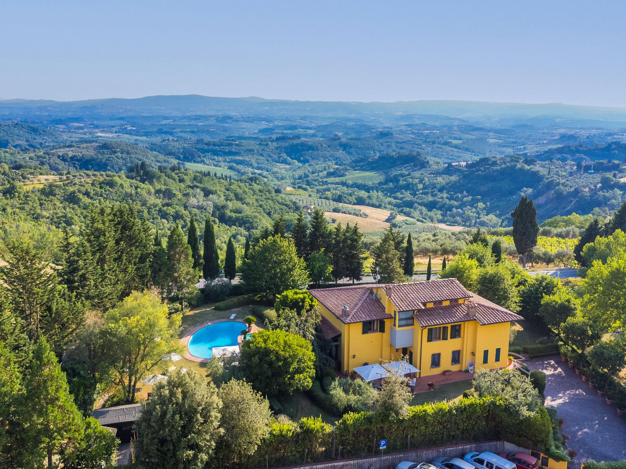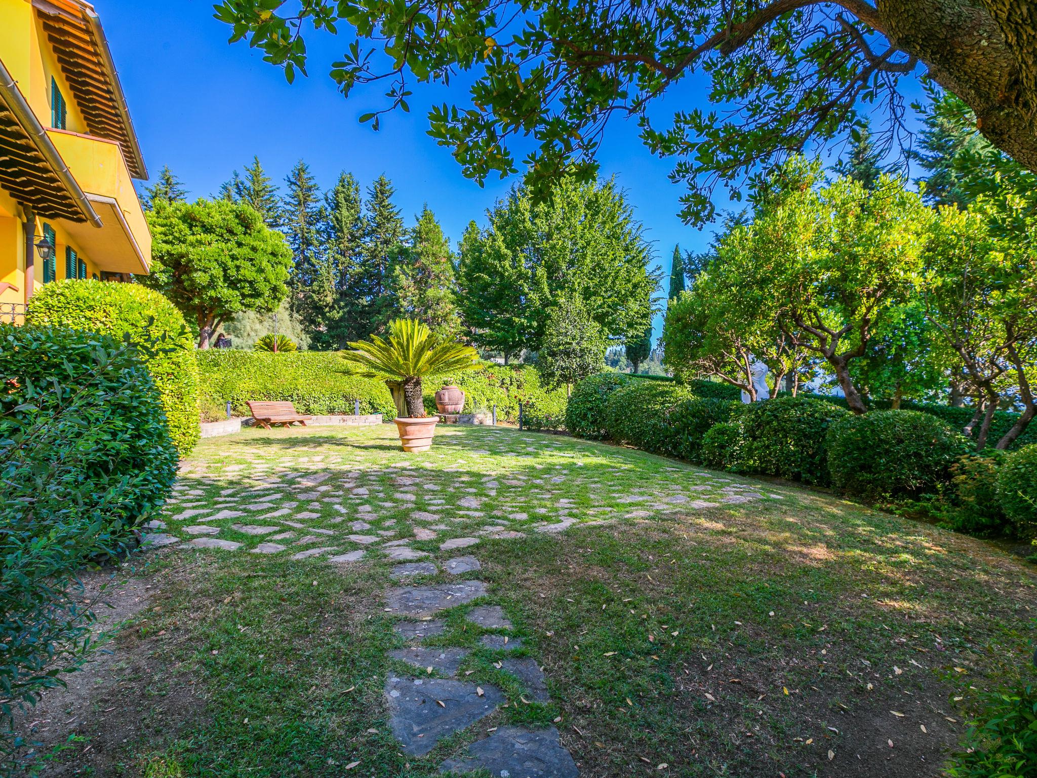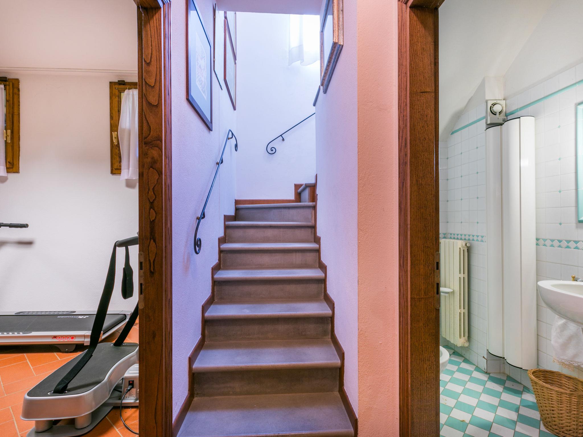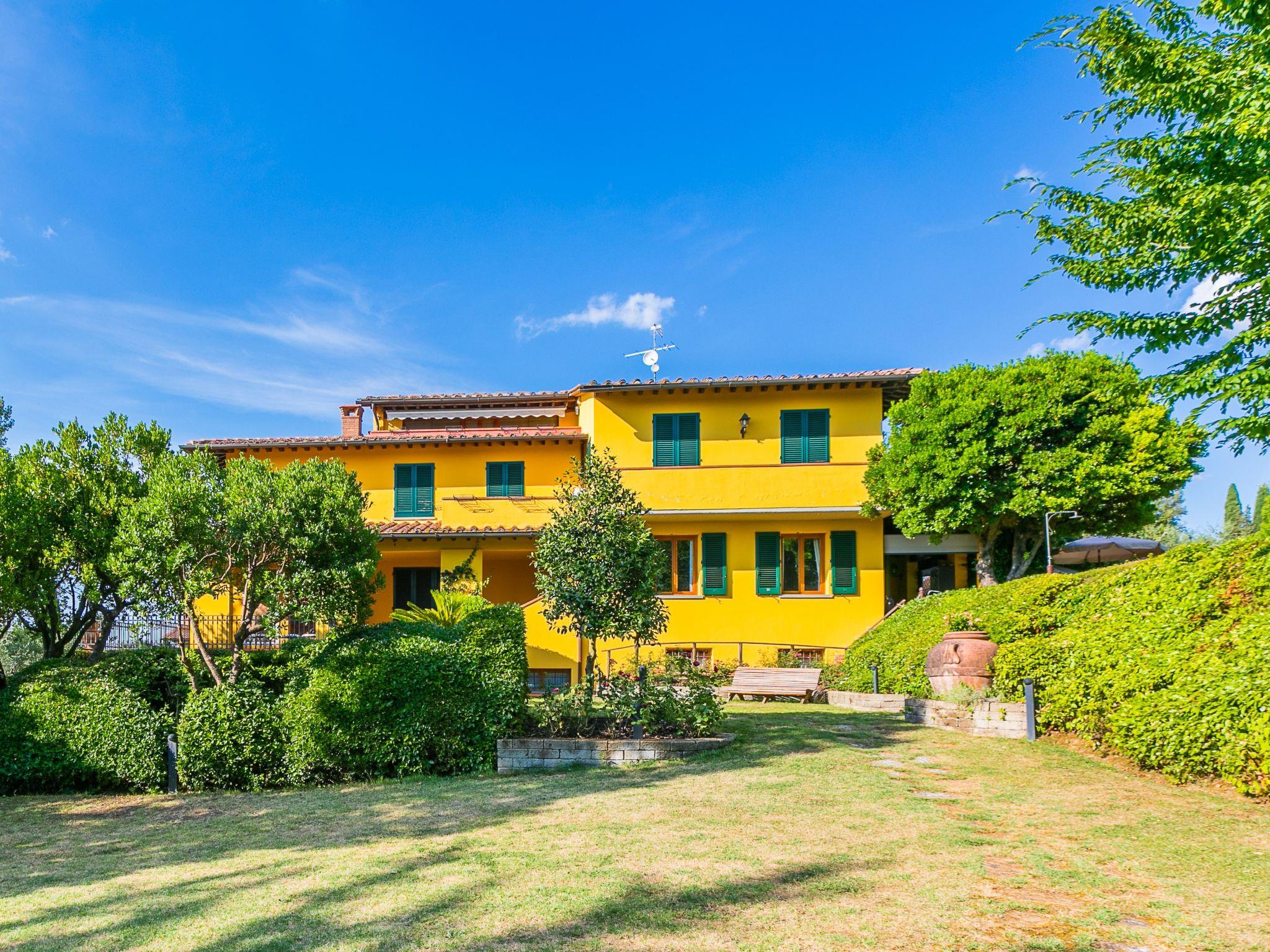 Marcialla 3 km from Tavarnelle Val di Pesa: Very beautiful, comfortable single-family house "Villa Silvana", 3 storeys. 800 m from the centre of Marcialla, in a secluded position in the residential district. Private: large, well-kept garden (fenced) with wildlife garden and trees, swimming pool (5 x 10 m, depth 100 - 250 cm, seasonal availability: 20.Apr. - 15.Oct.). Outdoor shower, hot tub, arbour, pergola, terrace, garden furniture, barbecue, pool maintenance by the owner/gardener. In the house: fitness room, hot tub (all included). Linen change (suppl. charge extra). Towel change (suppl. charge extra). Room cleaning on request (extra). House maid on request (extra). Cook on request (extra). Breakfast and half board possible (extra). Parking at the house, single garage at the house. Shop, grocery 800 m, supermarket 3 km, restaurant, bakery 800 m, bus stop 100 m, railway station "Zambra" 13 km, sandy beach "Cecina Mare" 90 km. Golf course (14 hole) 30 km. Nearby attractions: Certaldo 11 km, San Gimignano 22 km, Firenze 36 km, Siena 46 km, Volterra 47 km, Pisa 86 km. Please note: baby equipment (included). Suitable for events. Cooking courses bookable on request. The owner does not accept any youth groups.