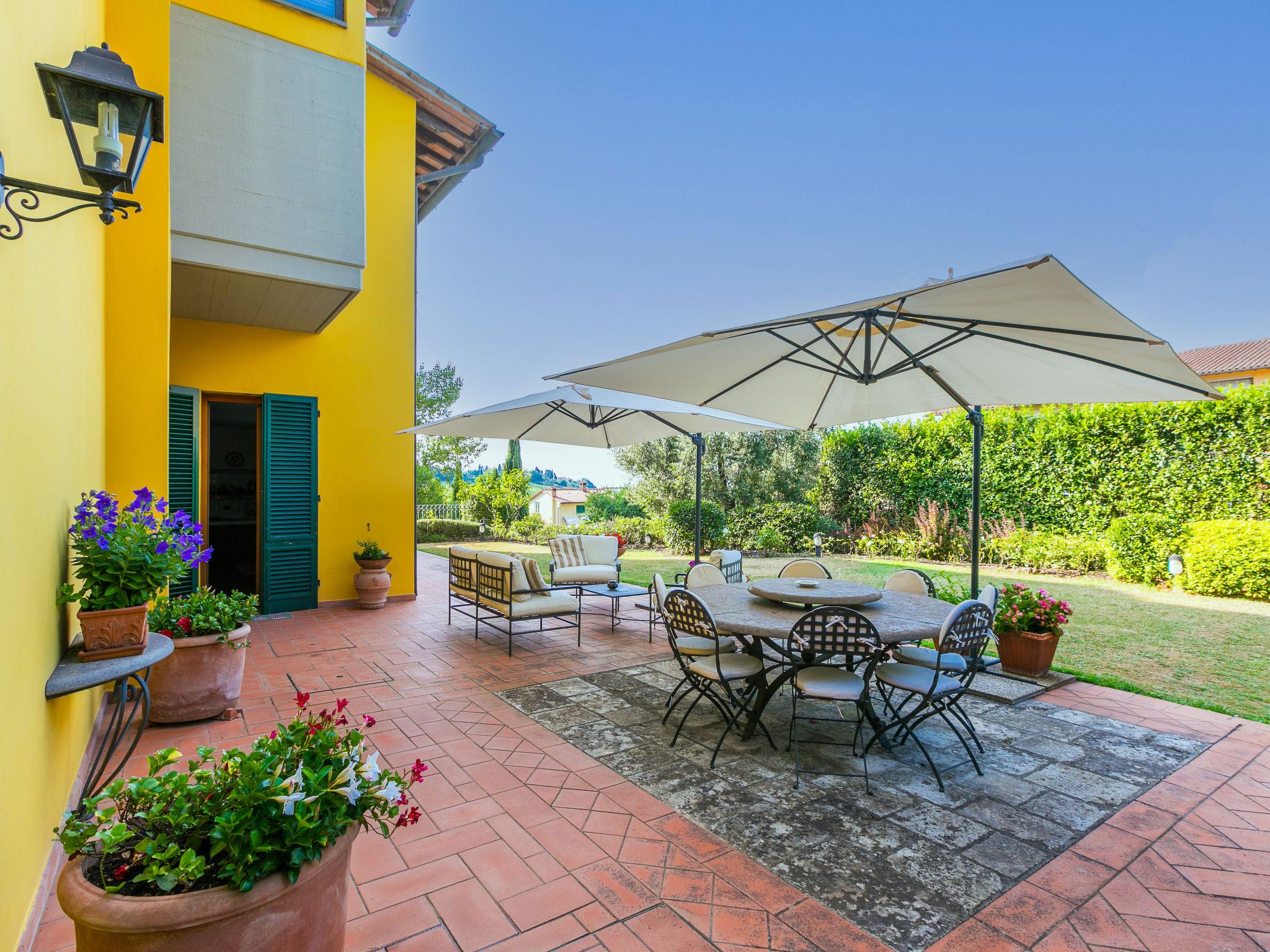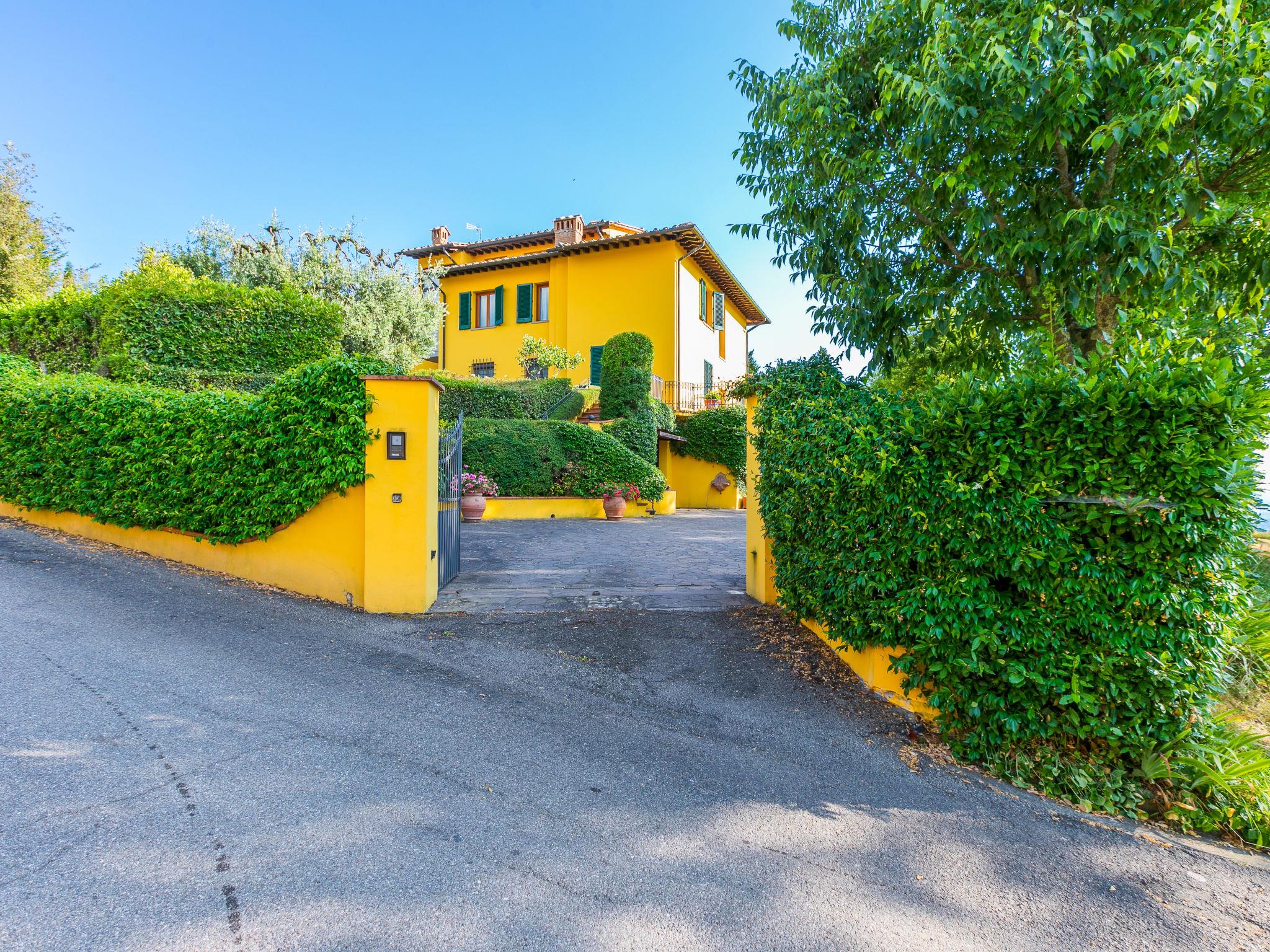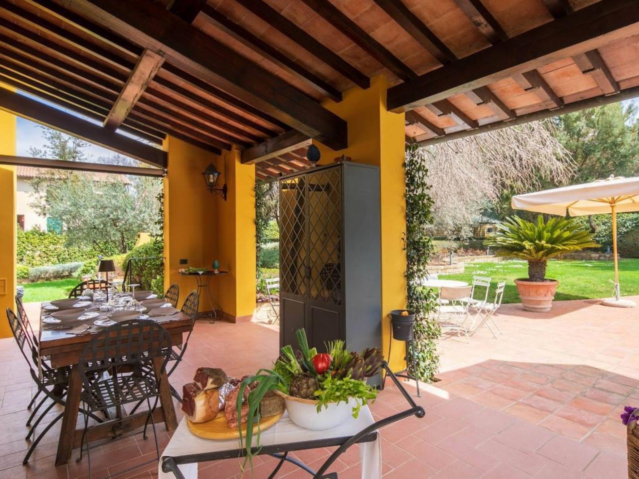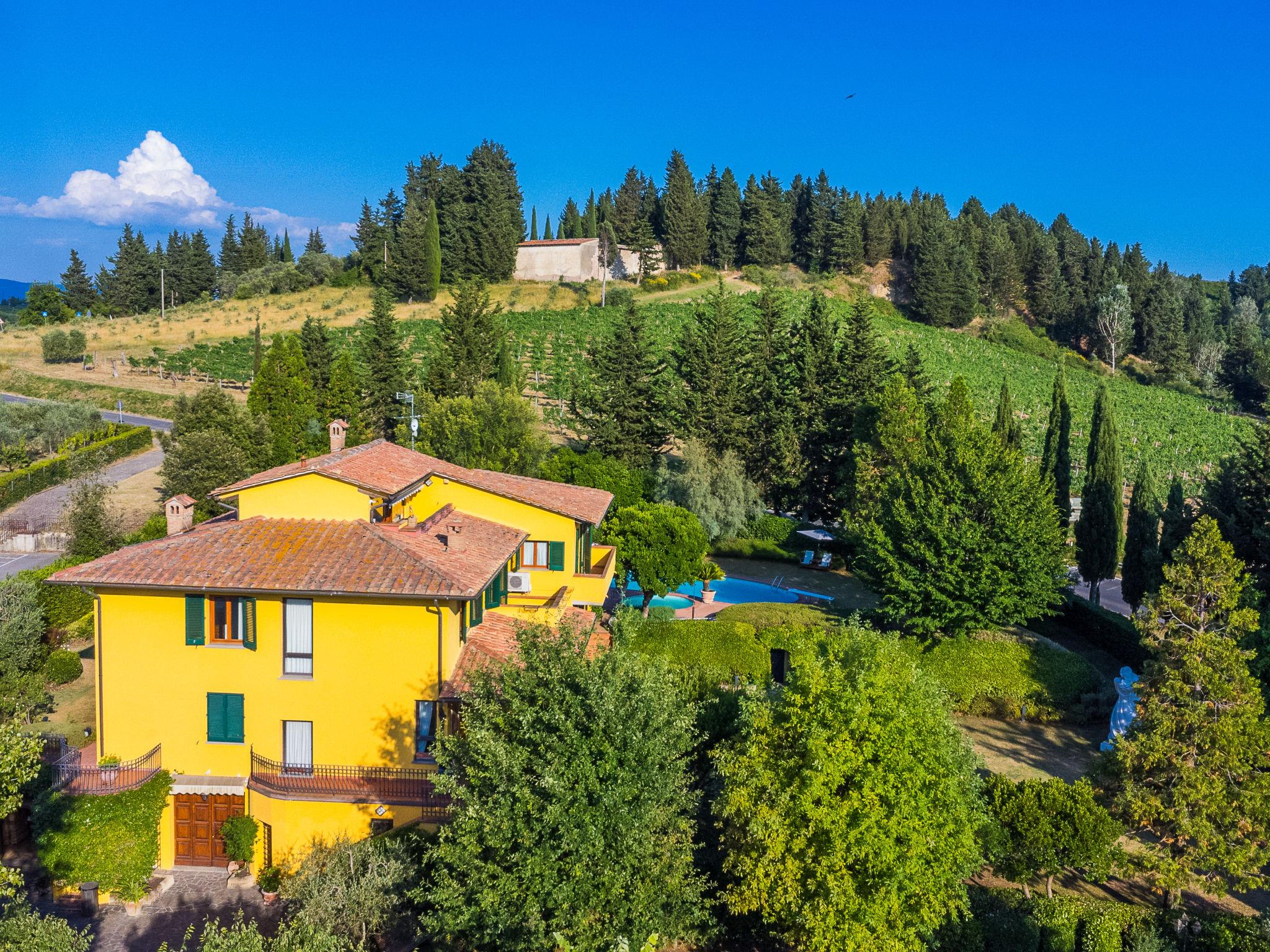 Marcialla 3 km from Tavarnelle Val di Pesa: Very beautiful, comfortable single-family house "Villa Silvana", 3 storeys. 800 m from the centre of Marcialla, in a secluded position in the residential district. Private: large, well-kept garden (fenced) with wildlife garden and trees, swimming pool (5 x 10 m, depth 100 - 250 cm, seasonal availability: 20.Apr. - 15.Oct.). Outdoor shower, hot tub, arbour, pergola, terrace, garden furniture, barbecue, pool maintenance by the owner/gardener. In the house: fitness room, hot tub (all included). Linen change (suppl. charge extra). Towel change (suppl. charge extra). Room cleaning on request (extra). House maid on request (extra). Cook on request (extra). Breakfast and half board possible (extra). Parking at the house, single garage at the house. Shop, grocery 800 m, supermarket 3 km, restaurant, bakery 800 m, bus stop 100 m, railway station "Zambra" 13 km, sandy beach "Cecina Mare" 90 km. Golf course (14 hole) 30 km. Nearby attractions: Certaldo 11 km, San Gimignano 22 km, Firenze 36 km, Siena 46 km, Volterra 47 km, Pisa 86 km. Please note: baby equipment (included). Suitable for events. Cooking courses bookable on request. The owner does not accept any youth groups.