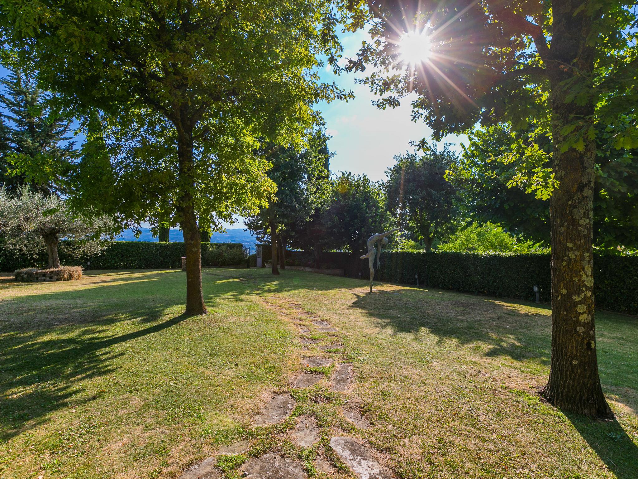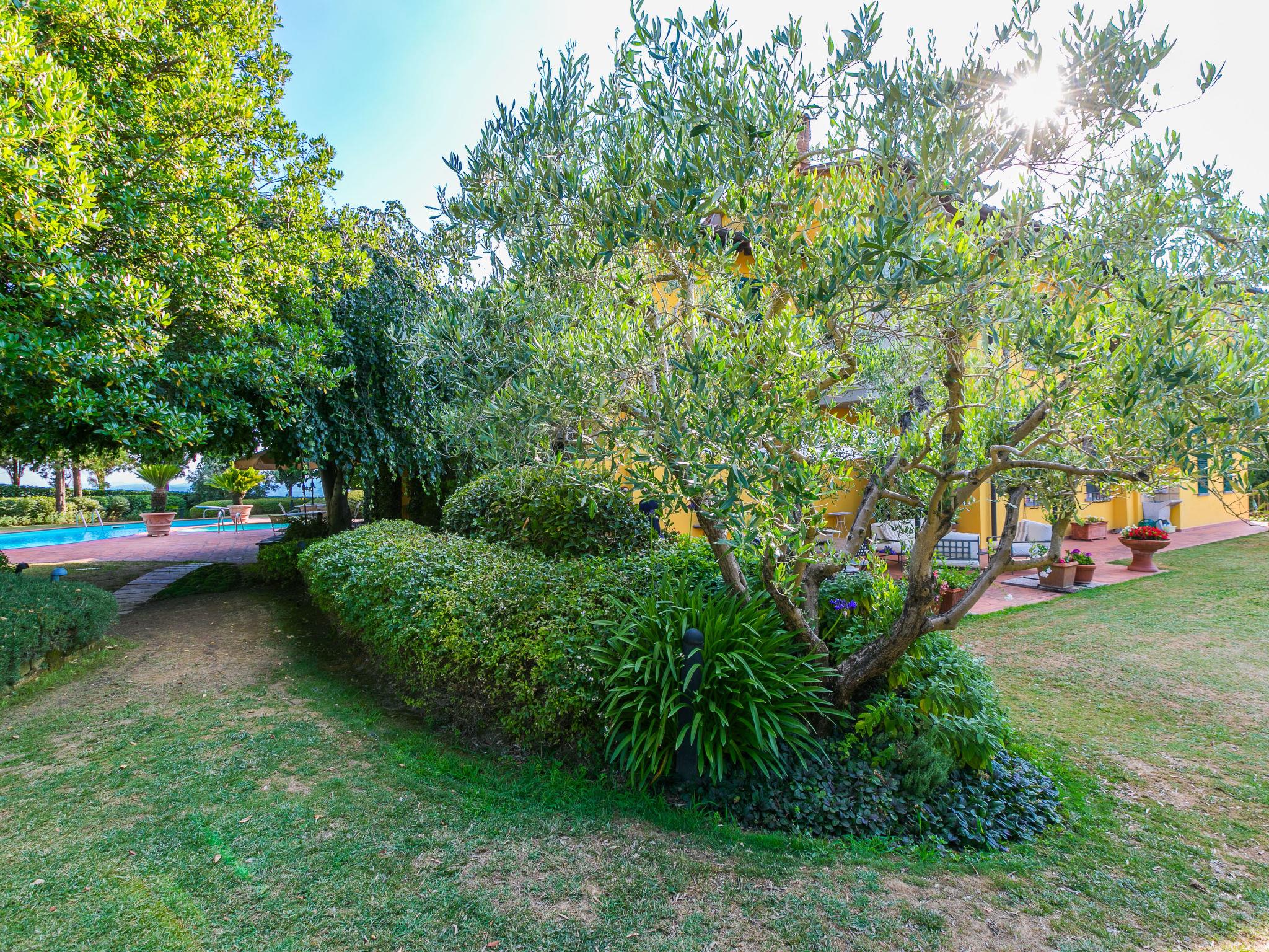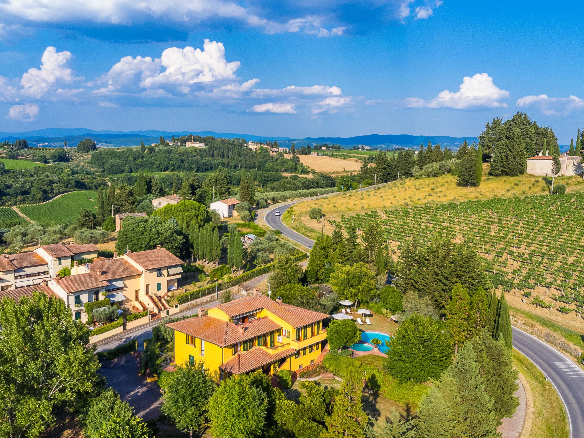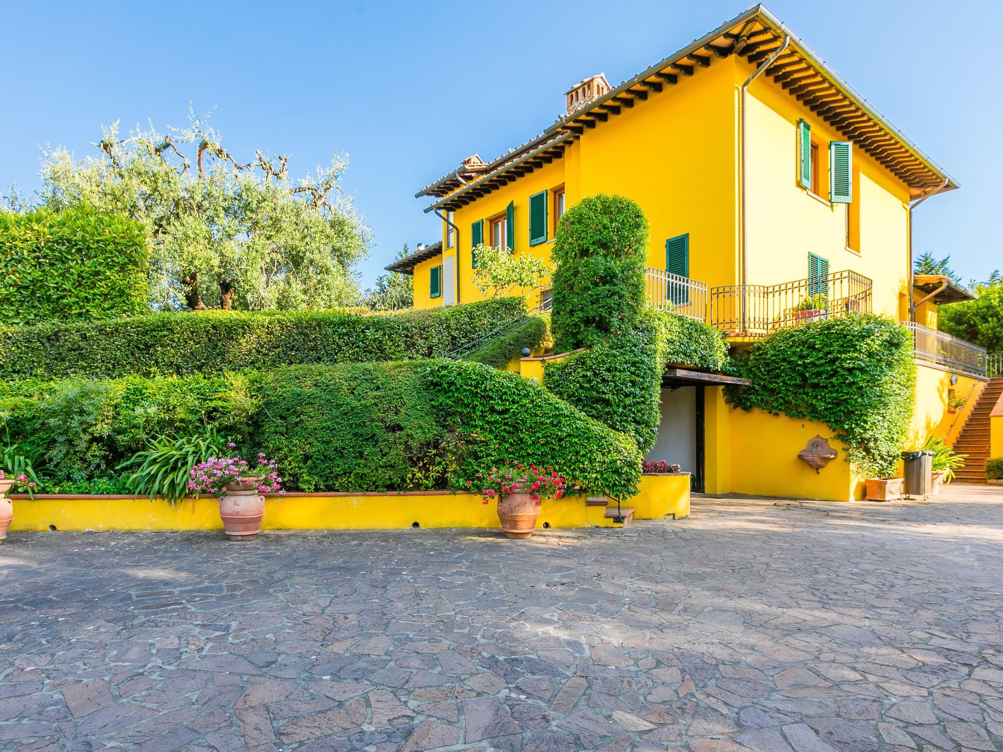 Marcialla 3 km from Tavarnelle Val di Pesa: Very beautiful, comfortable single-family house "Villa Silvana", 3 storeys. 800 m from the centre of Marcialla, in a secluded position in the residential district. Private: large, well-kept garden (fenced) with wildlife garden and trees, swimming pool (5 x 10 m, depth 100 - 250 cm, seasonal availability: 20.Apr. - 15.Oct.). Outdoor shower, hot tub, arbour, pergola, terrace, garden furniture, barbecue, pool maintenance by the owner/gardener. In the house: fitness room, hot tub (all included). Linen change (suppl. charge extra). Towel change (suppl. charge extra). Room cleaning on request (extra). House maid on request (extra). Cook on request (extra). Breakfast and half board possible (extra). Parking at the house, single garage at the house. Shop, grocery 800 m, supermarket 3 km, restaurant, bakery 800 m, bus stop 100 m, railway station "Zambra" 13 km, sandy beach "Cecina Mare" 90 km. Golf course (14 hole) 30 km. Nearby attractions: Certaldo 11 km, San Gimignano 22 km, Firenze 36 km, Siena 46 km, Volterra 47 km, Pisa 86 km. Please note: baby equipment (included). Suitable for events. Cooking courses bookable on request. The owner does not accept any youth groups.