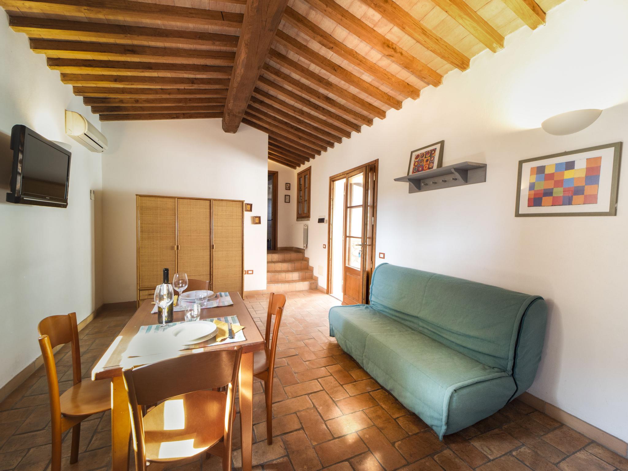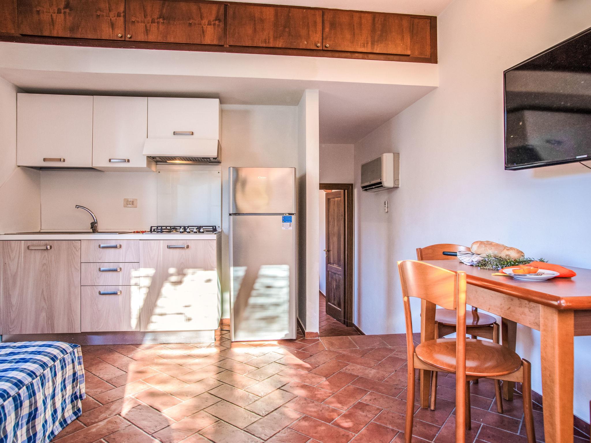 2-room apartment 40 m2. Practical and cosy furnishings: living/sleeping room with 1 double sofabed, dining table and digital TV. 1 double bedroom. Kitchenette (4 gas rings). Exit to the veranda. Shower/bidet/WC. Air-conditioning, forced-air heating. Terrace partly roofed. Terrace furniture, deck chairs (2). Parking (roofed, 1 car) at 150 m. Please note: non-smokers only. Private entrance. Please note: From the living room/bedroom access via 3-4 steps to the bedroom and bathroom. IT049010C2AJP8R2VG