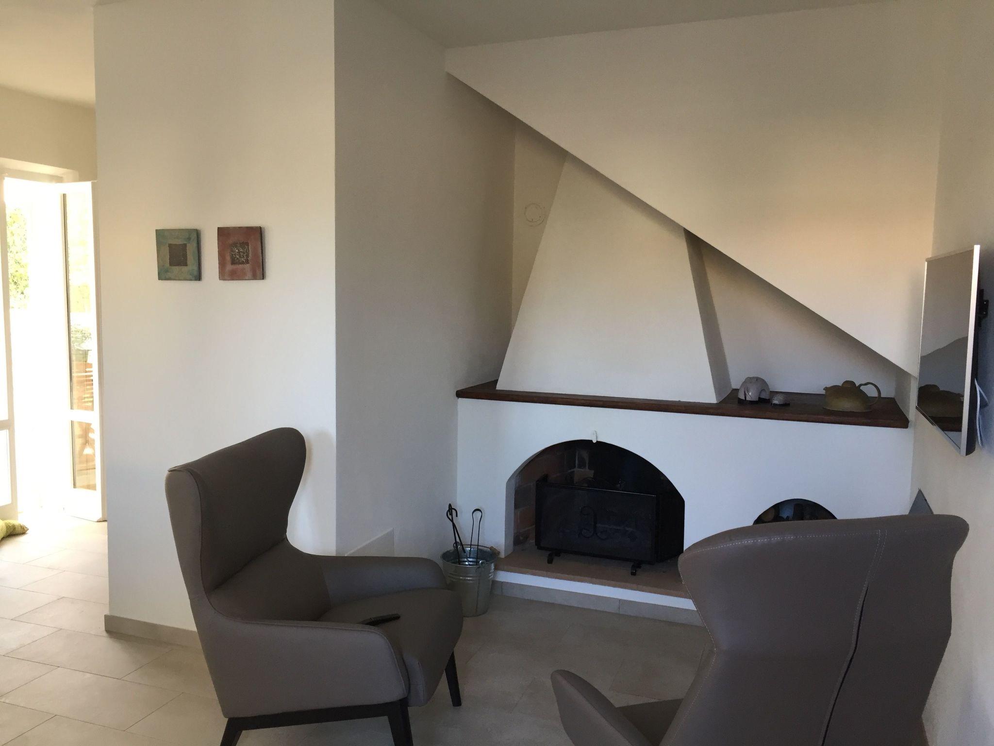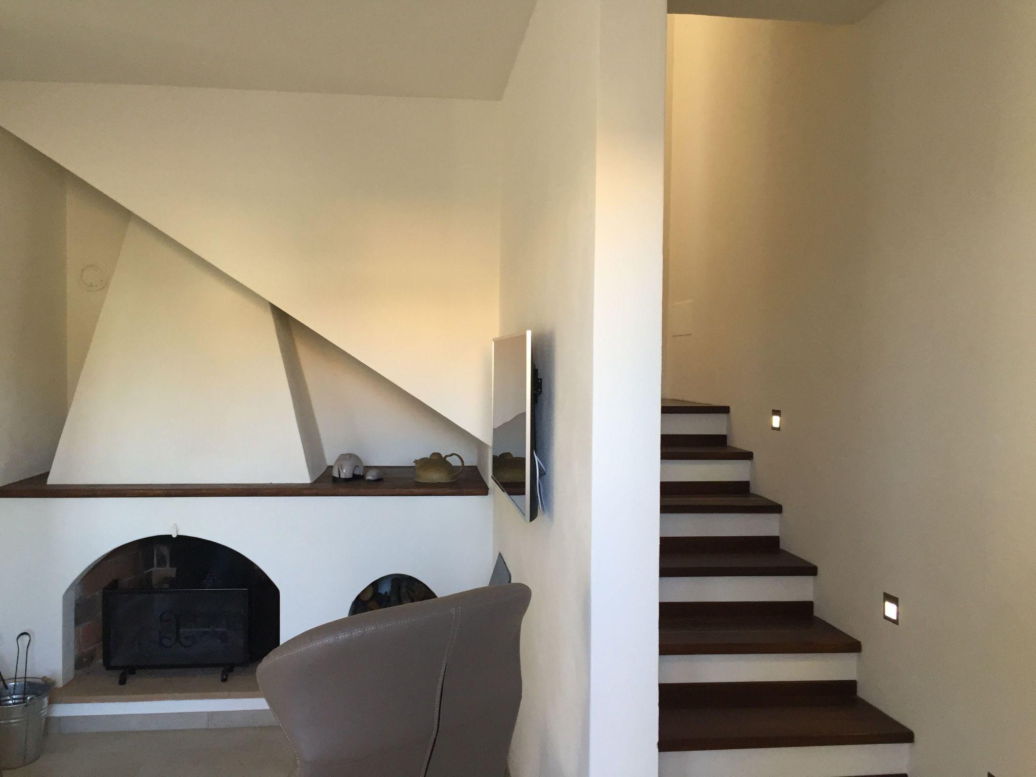 On the ground floor is a covered veranda where you can have lunch. Inside the kitchen, large living room with fireplace and TV area (with sofa bed), bathroom with shower, a staircase covered in wood leads to the first floor entirely dedicated to the sleeping area. here we find a double bedroom (which can also be set up as a double), a large suite room with double bed and third bed (fourth bed) with large terrace, bathroom with shower and terrace