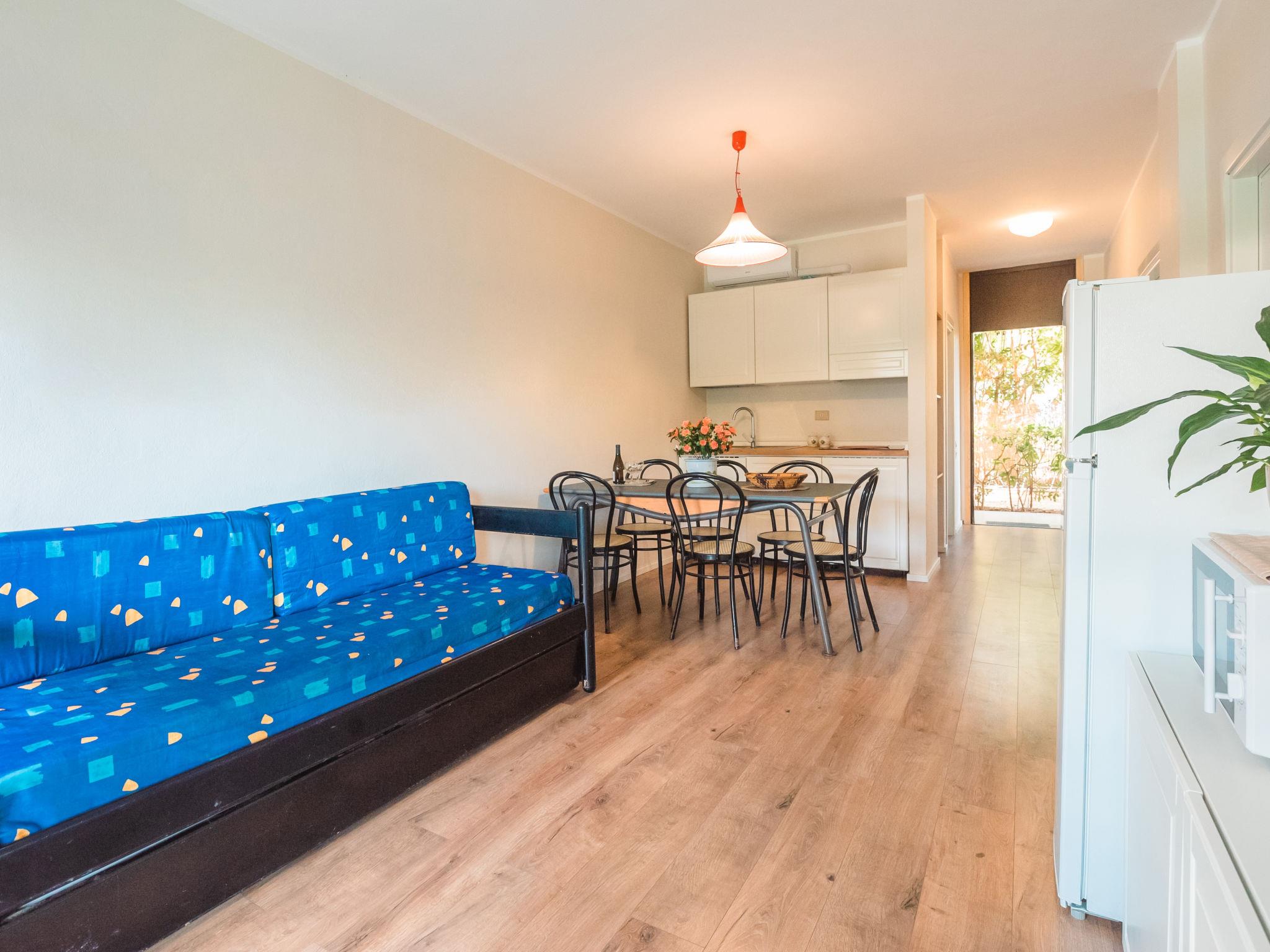 "Bilo Standard Garden", 2-room apartment 38 m2, on the ground floor. Beautiful and modern furnishings: living/sleeping room with 1 double sofabed, dining table, digital TV, flat screen, electric heating and air conditioning. Exit to the garden, to the veranda. 1 double bedroom. Open kitchen (4 induction hot plates, microwave, electric coffee machine, Capsules for coffee machine (Nescafe Dolce Gusto) extra). Shower/bidet/WC. Balcony 7 m2, small patio. Balcony furniture. View of the swimming pool. Facilities: children's high chair, baby cot for up to 2 year olds (extra), hair dryer. Internet (WiFi, free). Please note: fire extinguisher. IT049001B4AEH7IC3H
