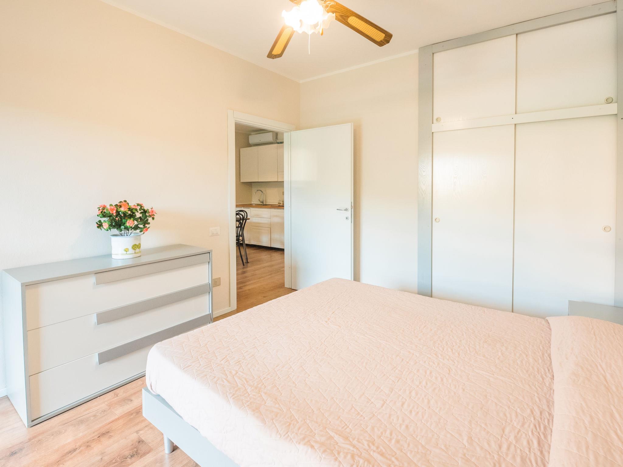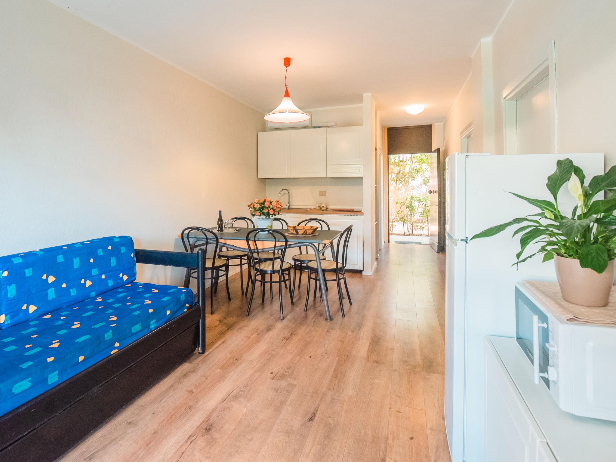 "Trilo Garden", 3-room apartment 55 m2, on the ground floor. Beautiful and modern furnishings: living/sleeping room with 1 sofabed, dining table, digital TV, flat screen, electric heating and air conditioning. Exit to the garden, to the veranda. 1 double bedroom. Exit to the garden, to the veranda. 1 room with 3 beds. Open kitchen (4 induction hot plates, microwave, electric coffee machine, Capsules for coffee machine (Nescafe Dolce Gusto) extra). Shower/bidet/WC. Balcony 14 m2, patio. Balcony furniture. View of the swimming pool. Facilities: children's high chair, baby cot for up to 2 year olds (extra), hair dryer. Internet (WiFi, free). Please note: fire extinguisher. IT049001B4AEH7IC3H