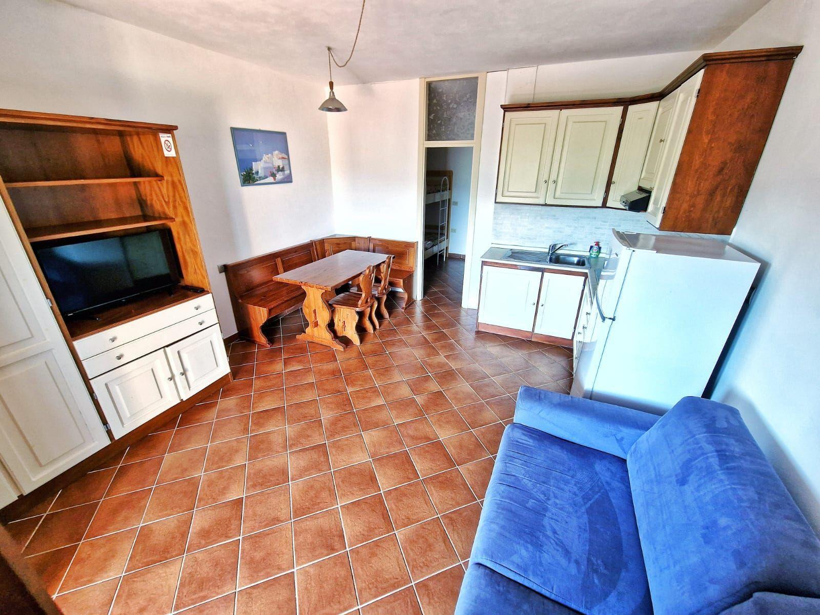 Comprising living room with kitchenette and double sofa bed (entrance with double French window, large ante-bathroom with bunk bed, private bathroom with shower cubicle (no window), bedroom (with window on service corridor side with natural light and naturally ventilated) with double bed + single bed and private service bathroom with window also on corridor side. Colour TV, air conditioning, standard fridge. Covered veranda equipped with table and chairs.