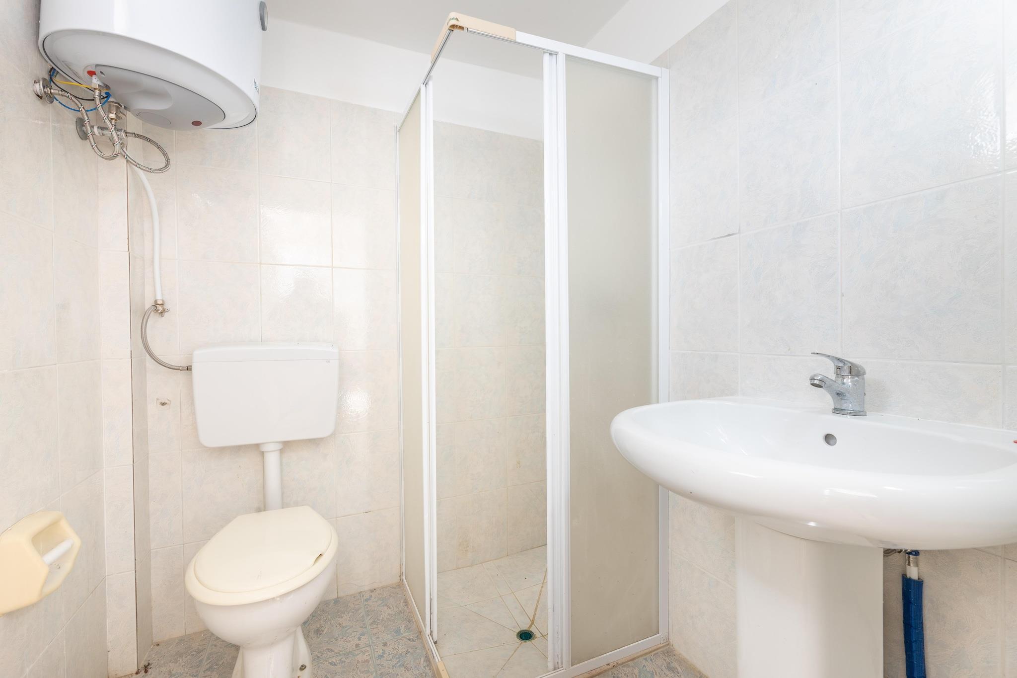 Stueetage: (Stue(dobbeltsovesofa, spisebord, sofahjørne), Køkken(kogeplade, mikrobølgeovn, køle-fryseskab), soveværelse(dobbeltseng), soveværelse(dobbeltseng), badeværelse(bruser, håndvask, toilet, bidet), vaskemaskine, balkon eller terrasse, klimaanlæg) badeværelse(bruser, håndvask, toilet)