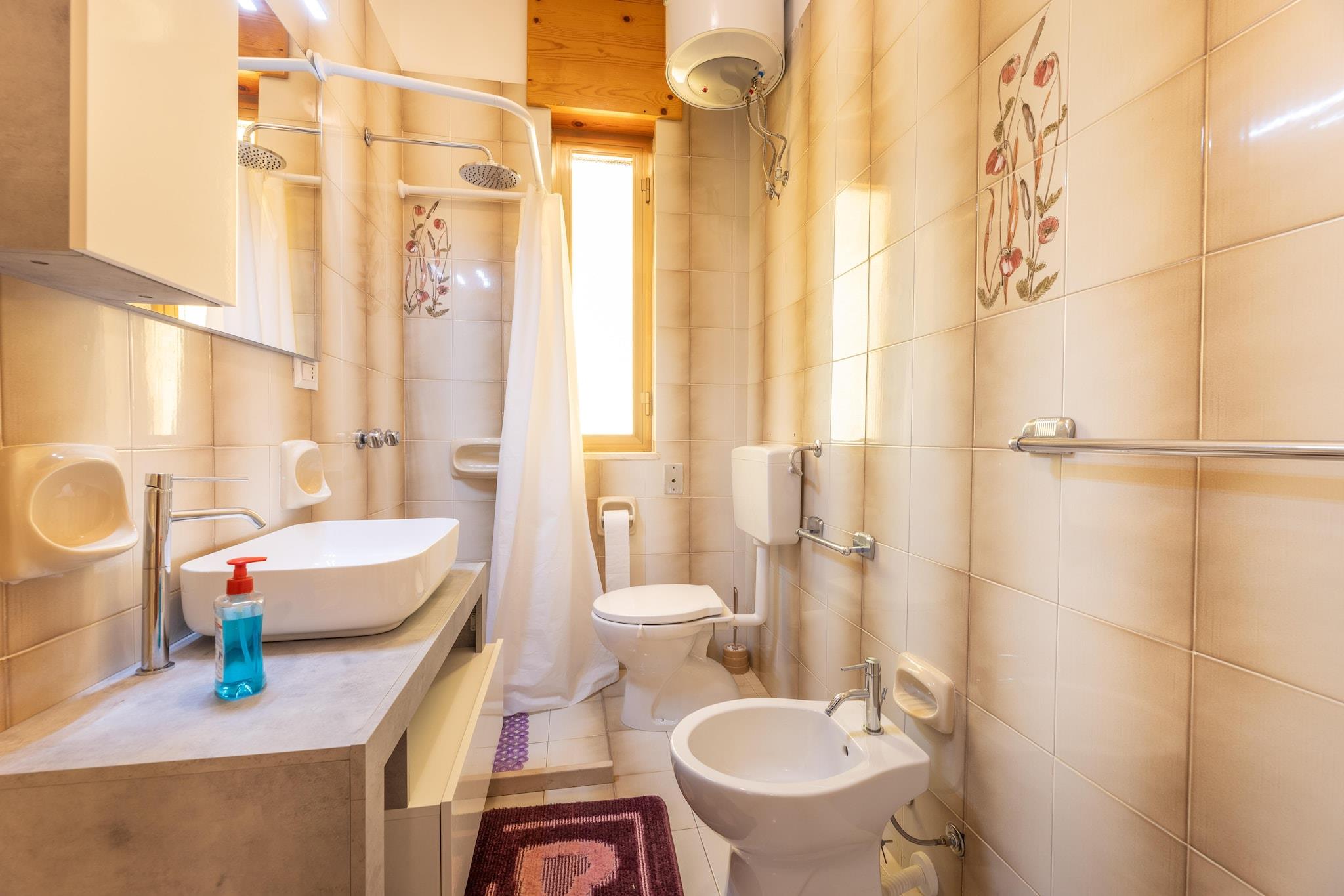 Treværelseslejlighed på 70 kvadratmeter med et induktionstekøkken i et separat tekøkken fra stuen. Den har to dobbeltværelser, en dobbeltsovesofa i stuen og et badeværelse med bruser. Den har også vaskemaskine, WiFi, aircondition (mod gebyr) og en lille udendørs balkon. Et andet udendørs badeværelse (uden bidet) er også tilgængeligt. Lejligheden ligger i Marina di Mancaversa, cirka 400 meter fra havet.