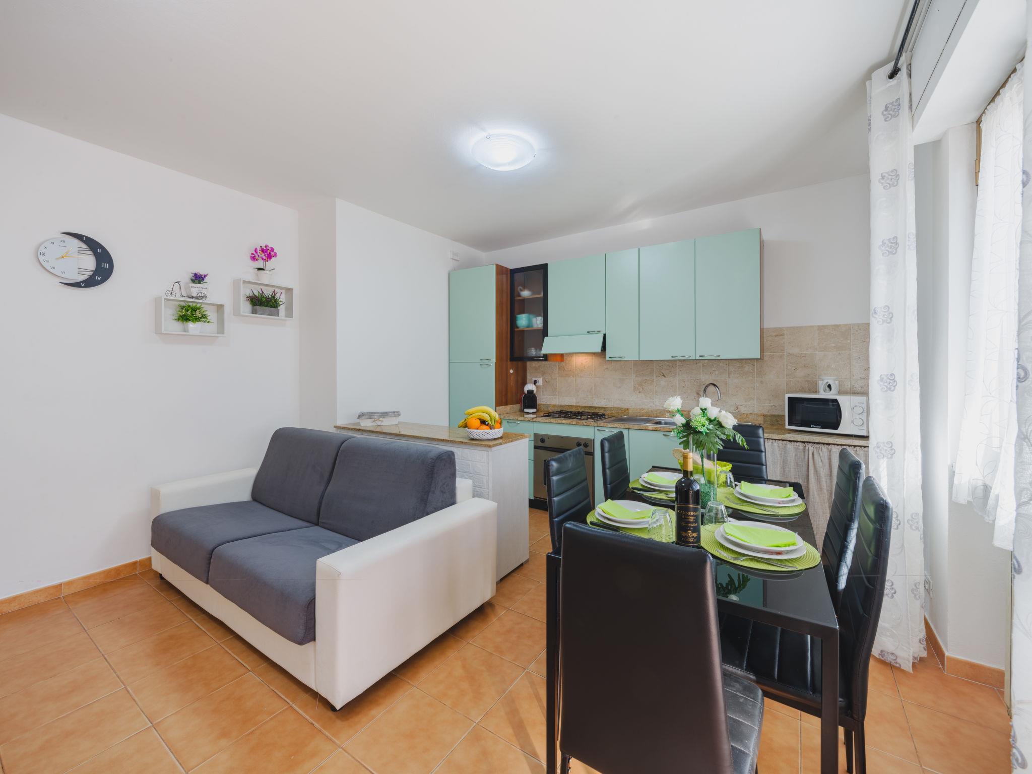 "Appartamento Sofia", 3-room apartment 65 m2, on the upper ground floor. Beautiful and cosy furnishings: open living room with flat screen. 2 double bedrooms. Kitchenette (oven, 4 gas rings, toaster, microwave, electric coffee machine) with dining table. Shower/bidet/WC. Gas heating (extra), air-conditioning (extra). Heating available only from 01.11. to 15.04. Terrace furniture, barbecue (portable). Facilities: washing machine, iron, mosquito net, children's high chair, baby cot for up to 2 year olds, hair dryer. Internet (WiFi). Parking (fenced 1 car). Please note: non-smokers only. Private entrance, smoke alarm, fire extinguisher. IT045010C2VZ57WWCF
