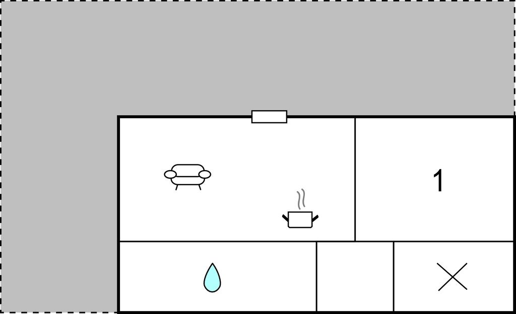 Opholdsstue/køkken 22m2 - 2 Sovepladser. (Sofa, madras eller lignende).