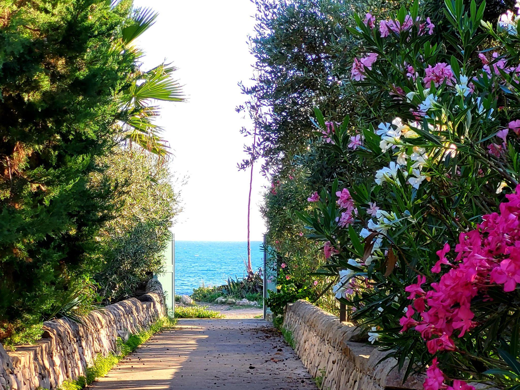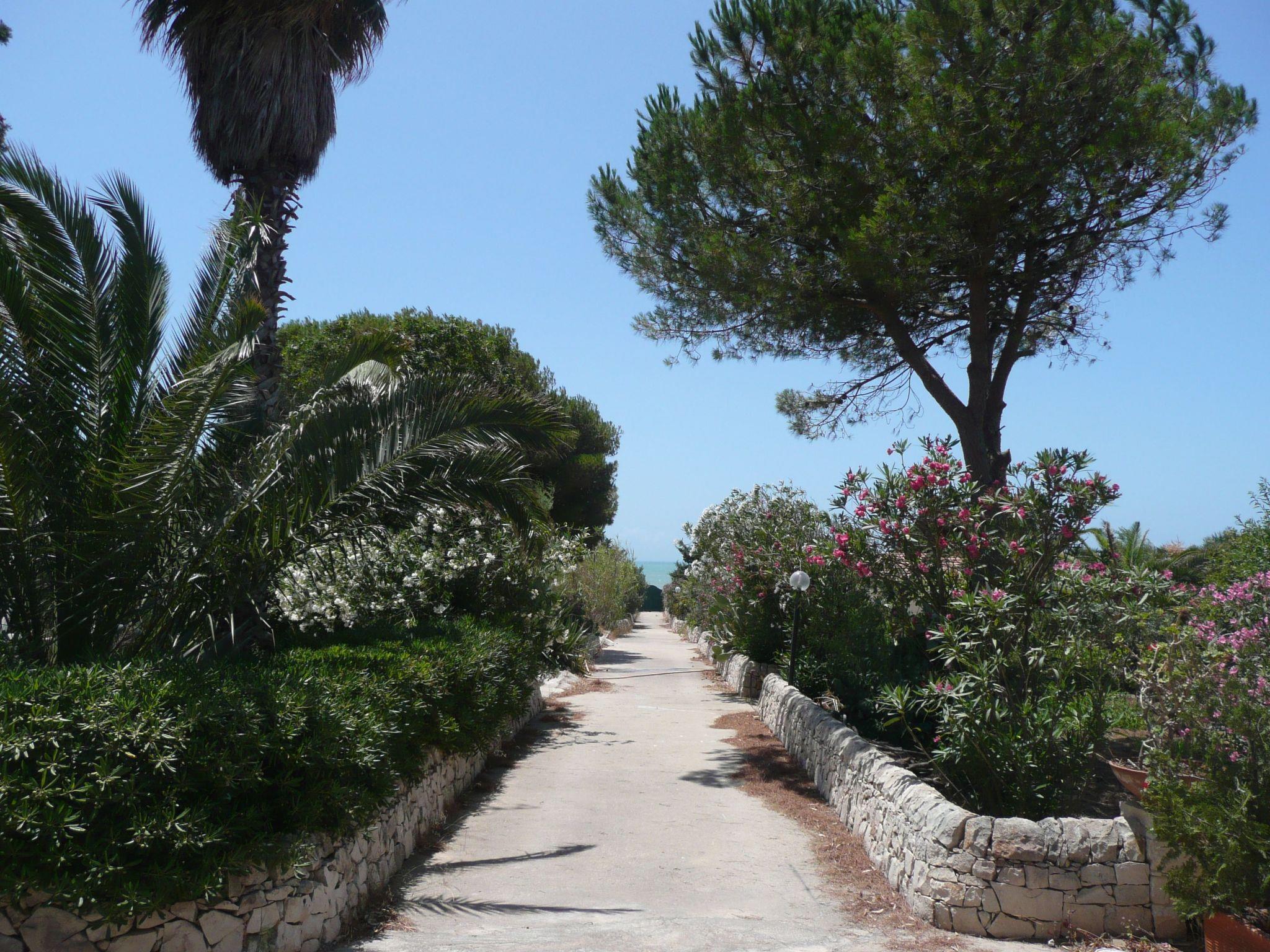 VACATION APARTMENT BY THE SEAThe vacation apartment "Casa Matilde", together with 2 other vacation homes, is located in a typical southern garden, directly by the sea, on a small rocky reef, which can be reached through a private entrance. The vacation house is surrounded by numerous pine trees, cacti, carob and eucalyptus trees, as well as flowering oleander and hibiscus bushes.