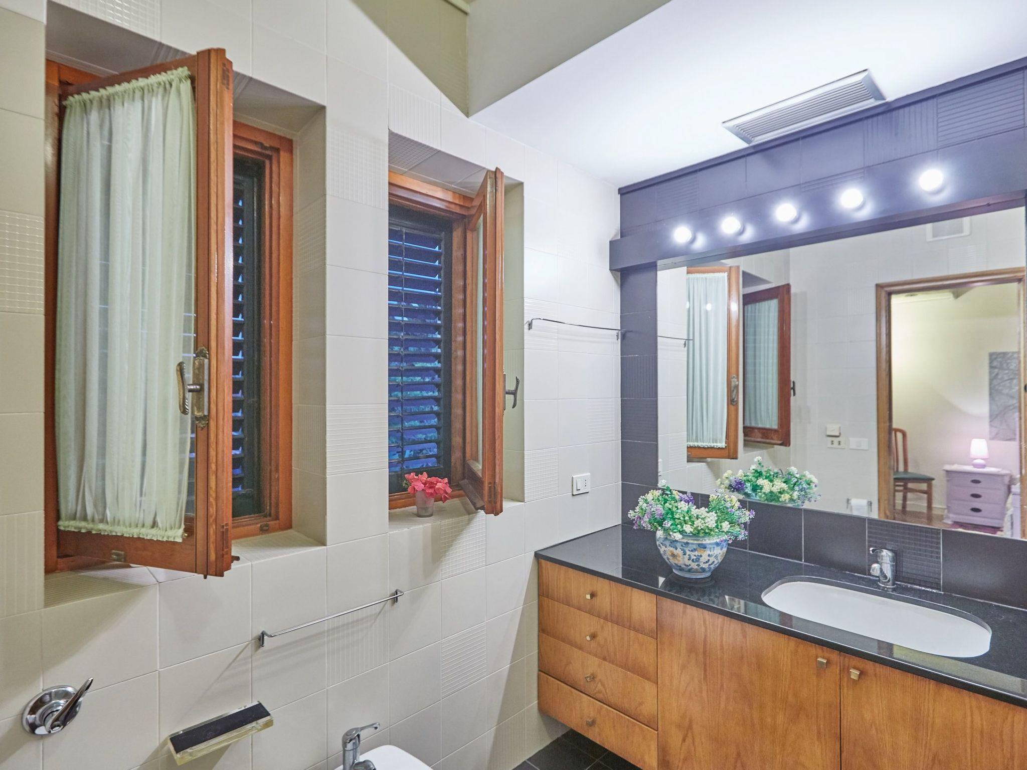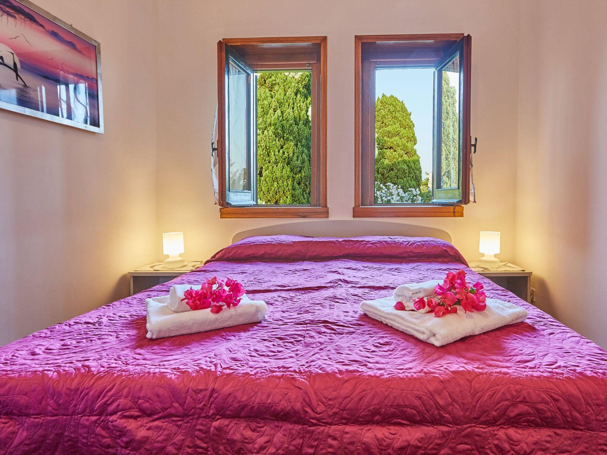 On the ground floor there is a large table where you can have lunch or dinner for about 15 people. Further on there is a billiard room, table football, 2 sofas and a Hi-Fi. Here you can put in your pen drive or CD or listen to the radio both inside and outside via a switch and hear the music by the pool. To the side of this room is the living area where there are 4 sofas seating 3 each and a beautiful flat screen TV with satellite, DVD supported by a shelf with books and a magnificent window to admire the surrounding park, the whole building is air conditioned. Also on the ground floor there is a very large kitchen measuring about 50 square metres with a work cube measuring 2x2 metres where there is a hob with 5 burners, an oven, a washbasin and various drawers with various utensils (plates, glasses, cutlery, pots, pans, etc., all for 20 people), a tall fridge freezer and two large fridges. The kitchen area is completed by a dishwasher and washing machine as well as various worktops. We go up to the first floor of about 160 square metres accessed via a beautiful wooden staircase where all the rooms are reached via a parquet corridor. The rooms are all equipped with air conditioning, toilet, bidet, shower, sink, room No. 1 is the most 'beautiful furnished in a very fine way with Persian carpet and sofa bed and enjoys a large terrace overlooking the sea furnished with a white polirattan lounge (shared with 2 other rooms) with a magnificent view of the park, then there are 2 single rooms and 5 other elegantly furnished double rooms, all overlooking the park or swimming pool.