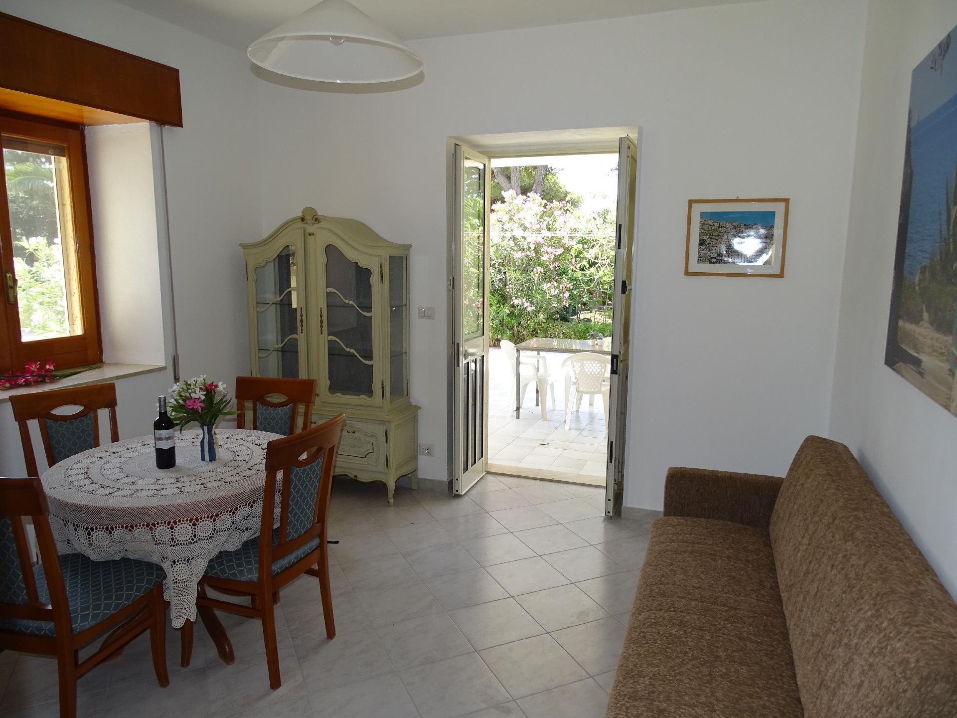 VACATION APARTMENT BY THE SEAThe vacation apartment "Casa Matilde", together with 2 other vacation homes, is located in a typical southern garden, directly by the sea, on a small rocky reef, which can be reached through a private entrance. The vacation house is surrounded by numerous pine trees, cacti, carob and eucalyptus trees, as well as flowering oleander and hibiscus bushes.