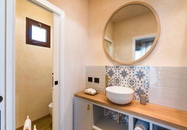 Main House: Ground floor: living-dining room (TV), kitchen, 1 bathroom - laundry, 1 double bedroom (180 x 200 cm bed) with bathroom-shower. Annex: (access from outside): Ground floor: 3 double bedrooms (180 x 200 cm bed) with bathroom-shower.