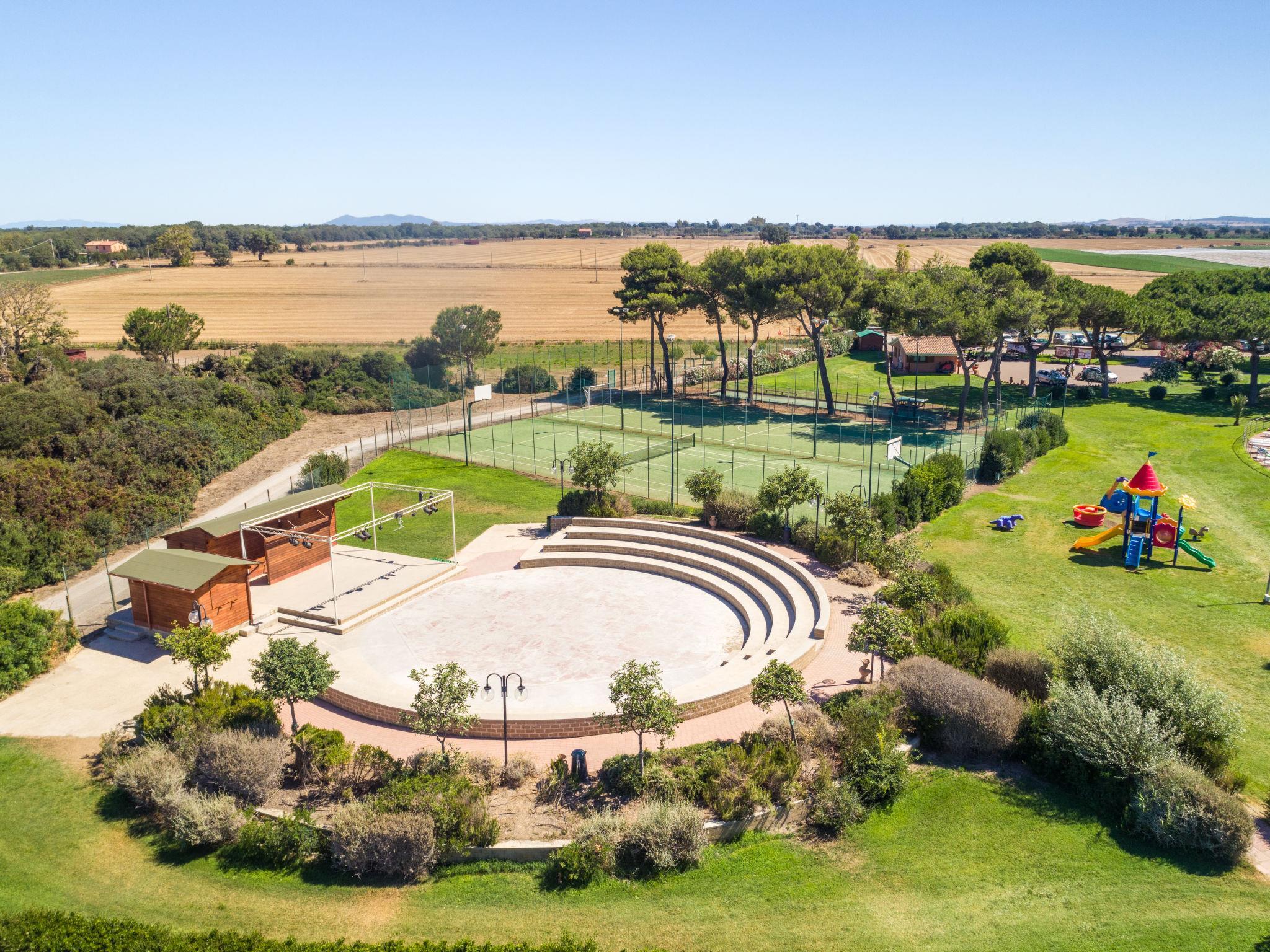 110 km from Roma: Large, child friendly holiday village "Gitavillage California". 5 km from the centre of Montalto Marina, outside the resort, 7 km from the centre of Montalto di Castro, 500 m from the sea, 500 m from the beach, direct access to the beach. For shared use: property with plants and trees, swimming pool (seasonal availability: 24.May. - 15.Sep. pool opening hours: 09:00-19:00). Children's pool, slide, outdoor shower, hot tub, tennis (extra), table tennis, basketball, boccia (extra), beach volleyball, garden furniture, children's playground. In the complex: reception, restaurant, bar, WiFi (extra). Spa area for shared use (extra), washing machine, tumble dryer (for shared use, extra). Available: boat (extra). Parking at 400 m on the premises. Grocery 50 m, supermarket 5 km, bus stop 6 km, railway station "Montalto di Castro" 5 km, sandy beach 500 m. Nearby attractions: Tarquinia 20 km, Vulci 20 km, Saturnia 55 km, Viterbo 56 km, Roma 110 km, Train Montalto - Roma Termini 1h 40min. Well-known lakes can easily be reached: Lago di Bolsena (Capodimonte) 50 km, Lago di Bracciano (Bracciano) 90 km. Please note: entertainment in the season. Suitable for families, baby equipment on request (extra). The owner does not accept any youth groups. Loading and unloading of baggage is possible at the holiday house. Obligation to wear bathing caps.