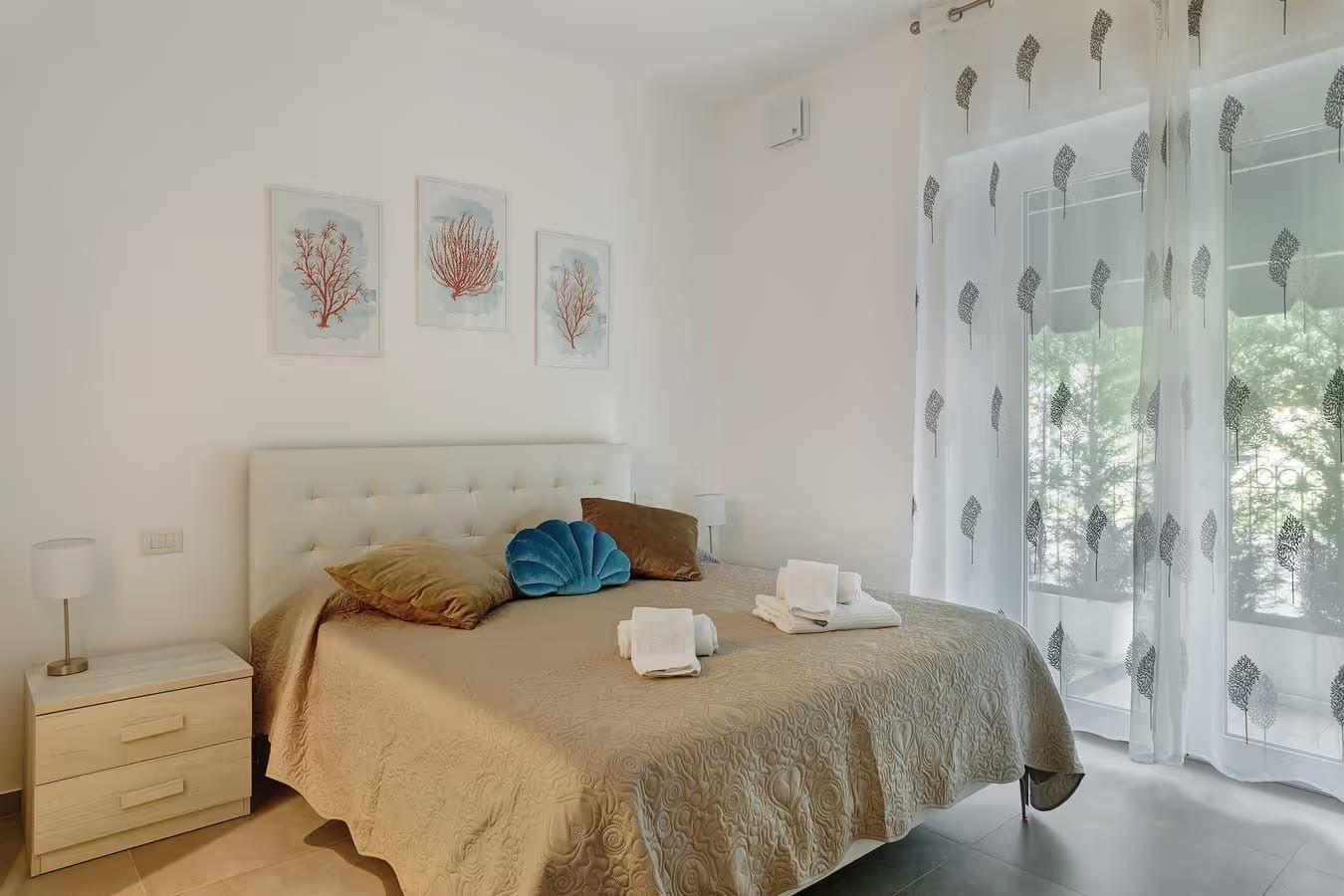 Inside, the flat is equipped with a range of amenities designed for maximum comfort: air conditioning in all rooms to keep the atmosphere cool during hot summer days, smart TV for relaxing moments and a well-equipped kitchen with induction cooker, coffee machine (electric and capsule), dishwasher and electric kettle. In addition, a washing machine for exclusive use guarantees convenience even for longer stays.