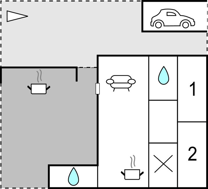 Opholdsstue/køkken - 2 Sovepladser. (Sofa, madras eller lignende).